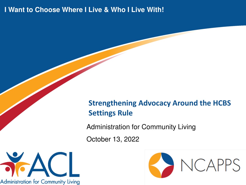 I Want to Choose Where I Live & Who I Live With! Strengthening Advocacy Around the HCBS Settings Rule Administration for Community Living October 13, 2022