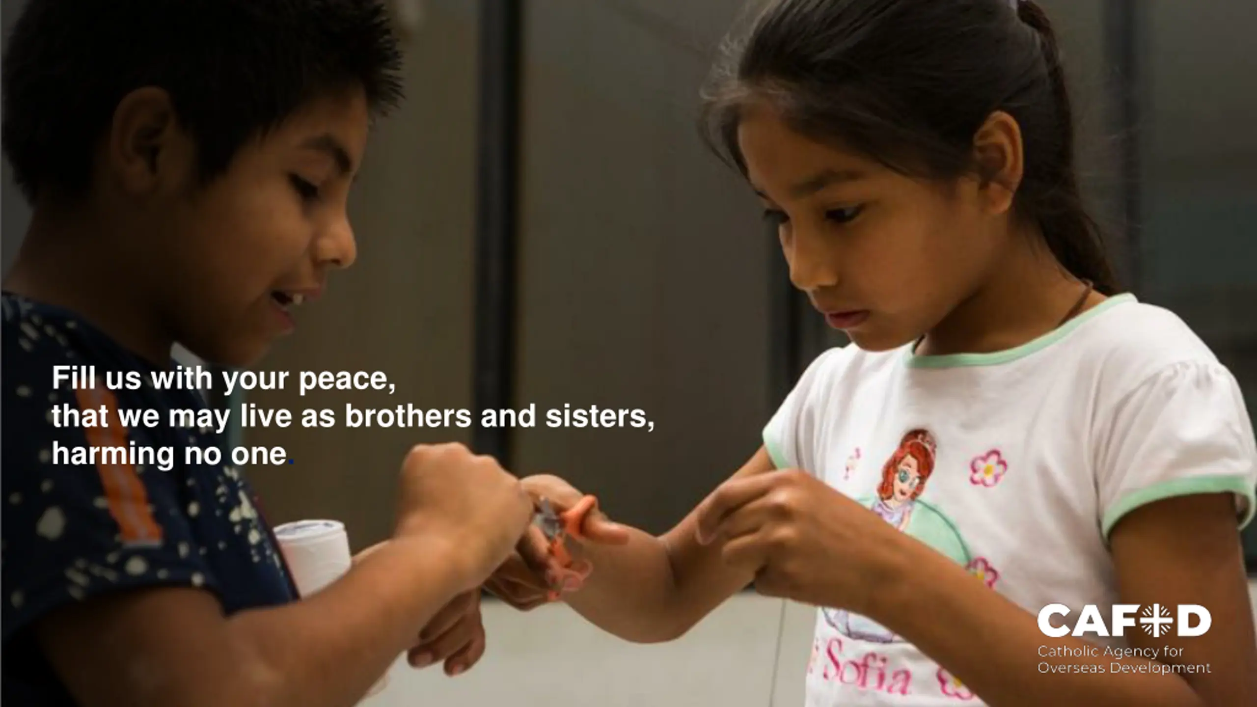Fill us with your peace, that we may live as brothers and sisters, harming no one.