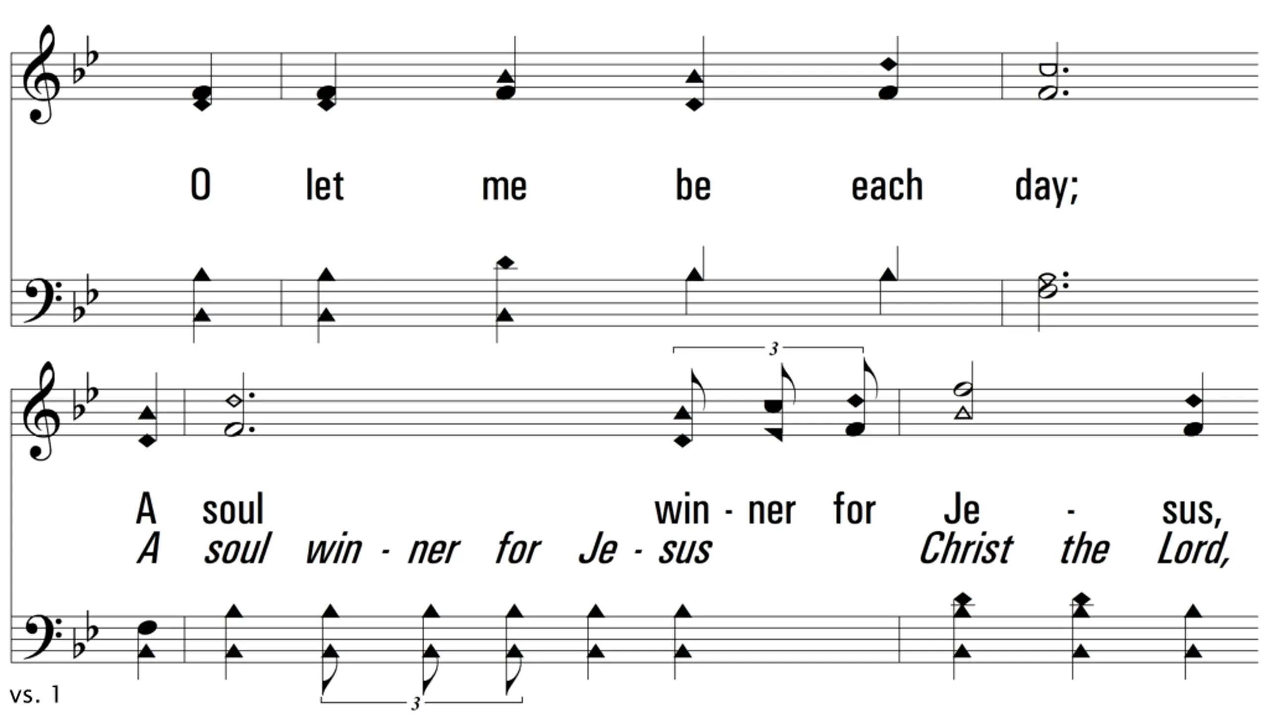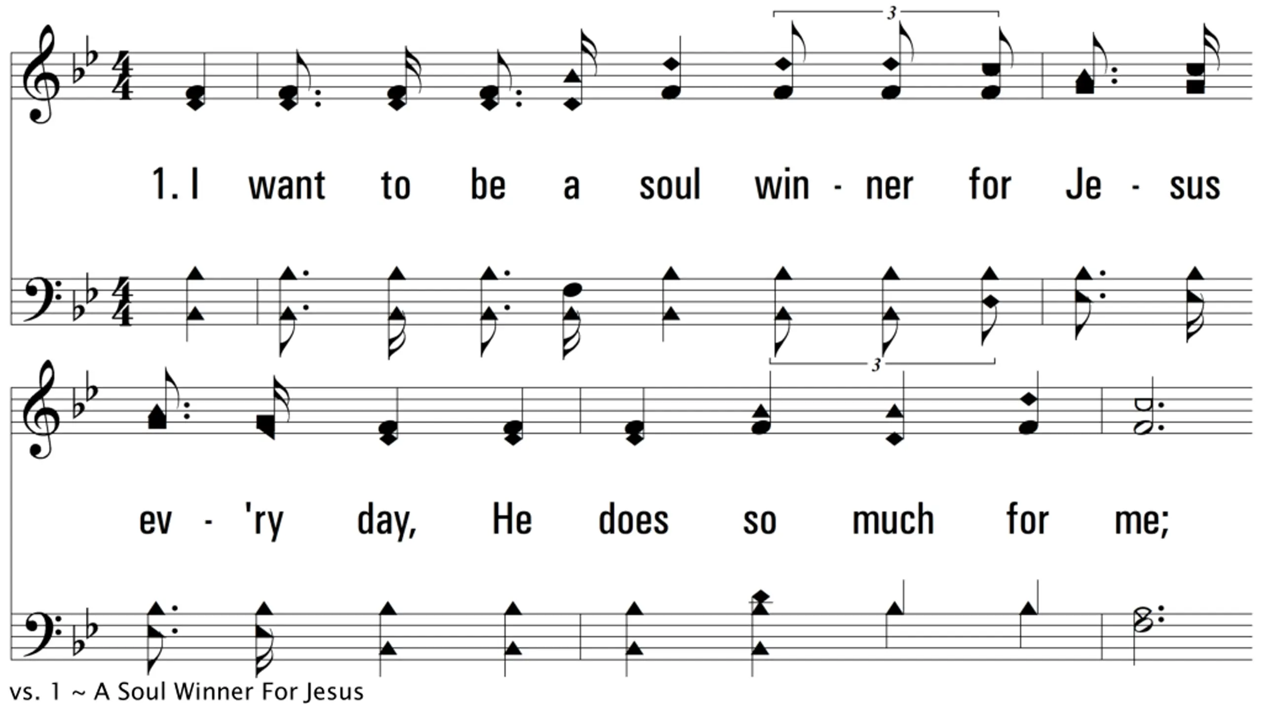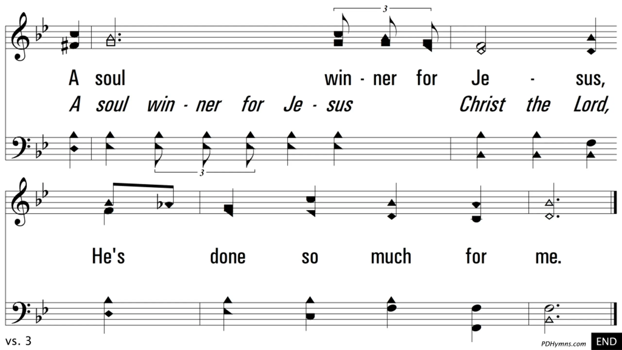 A Soul Winner For Jesus Words: J. W. Ferrill (1907) Music: J. W. Ferrill (1907) Lead - SOL Alto - MI Tenor - DO Bass - DO 4/4 Bb/F - SOL Verses: 3/Chorus PDHymns.com