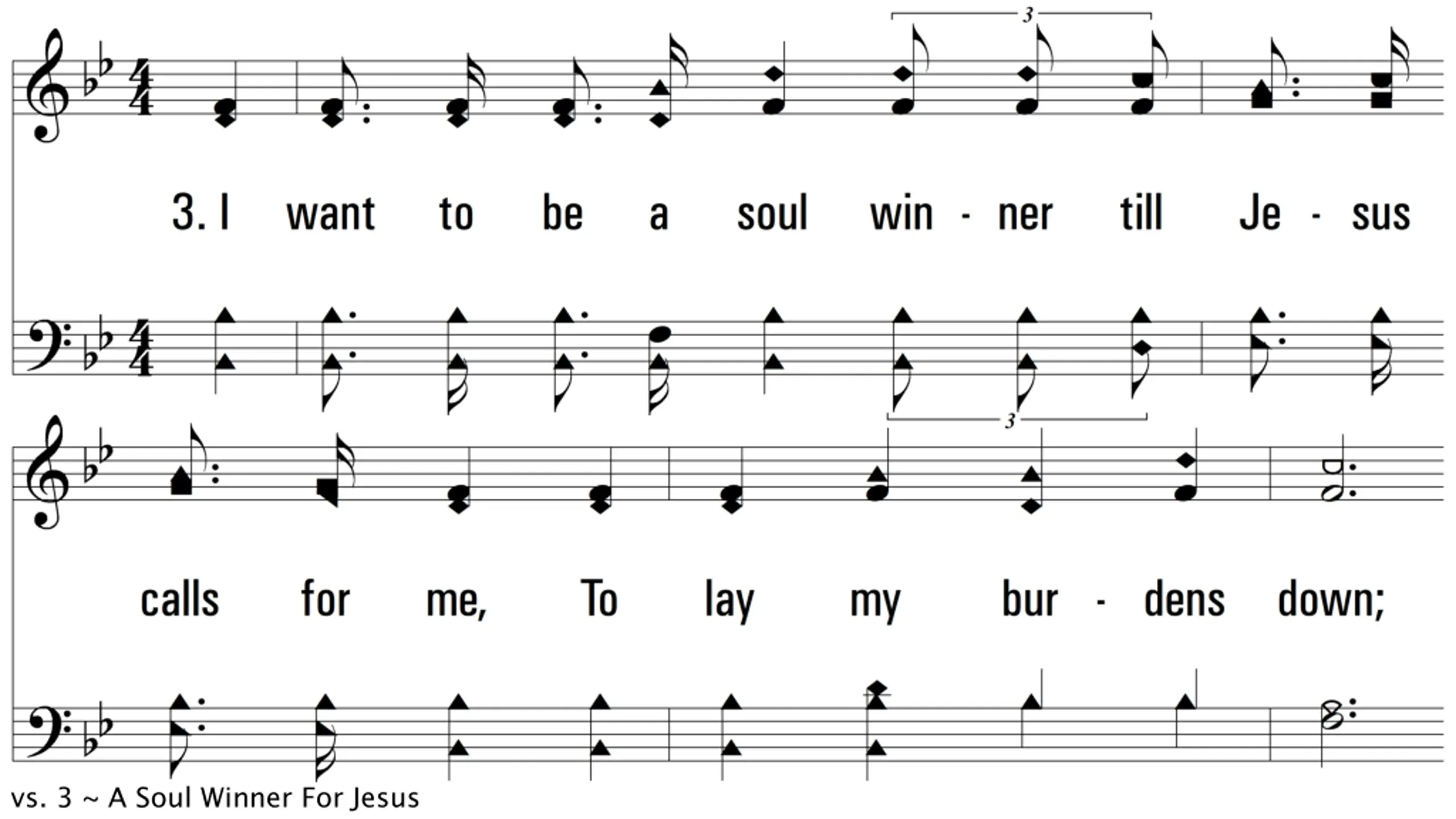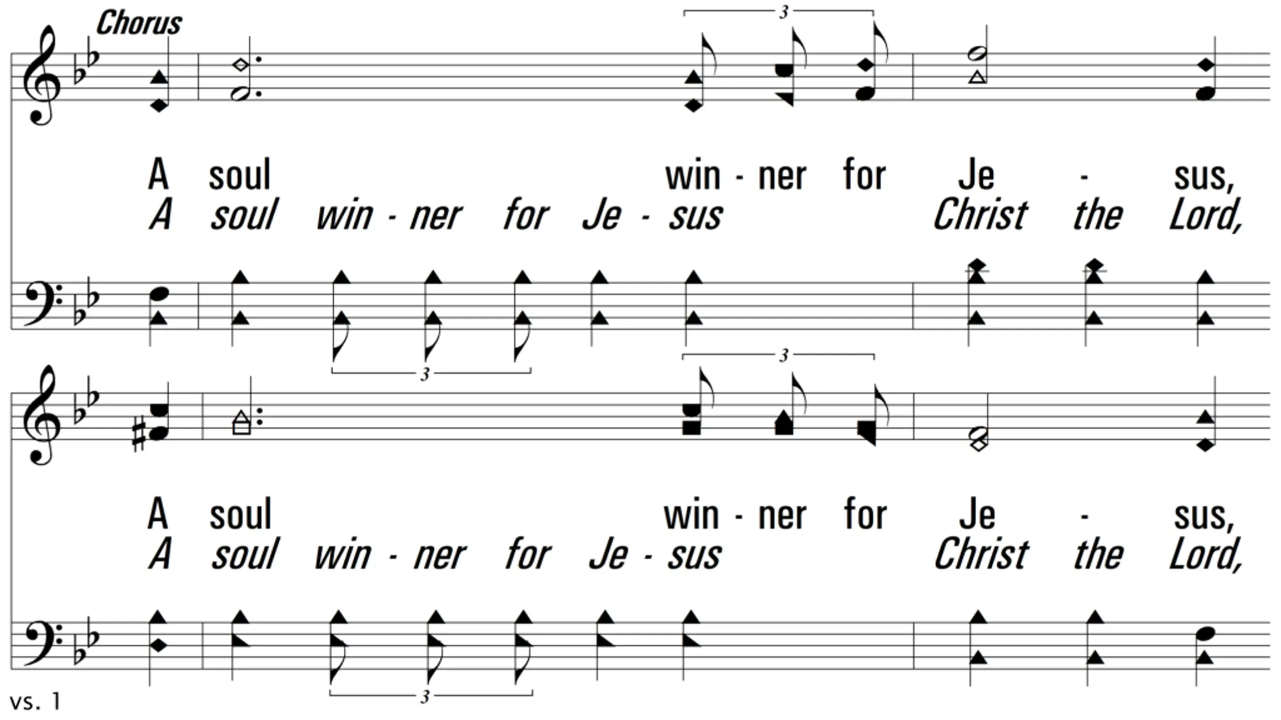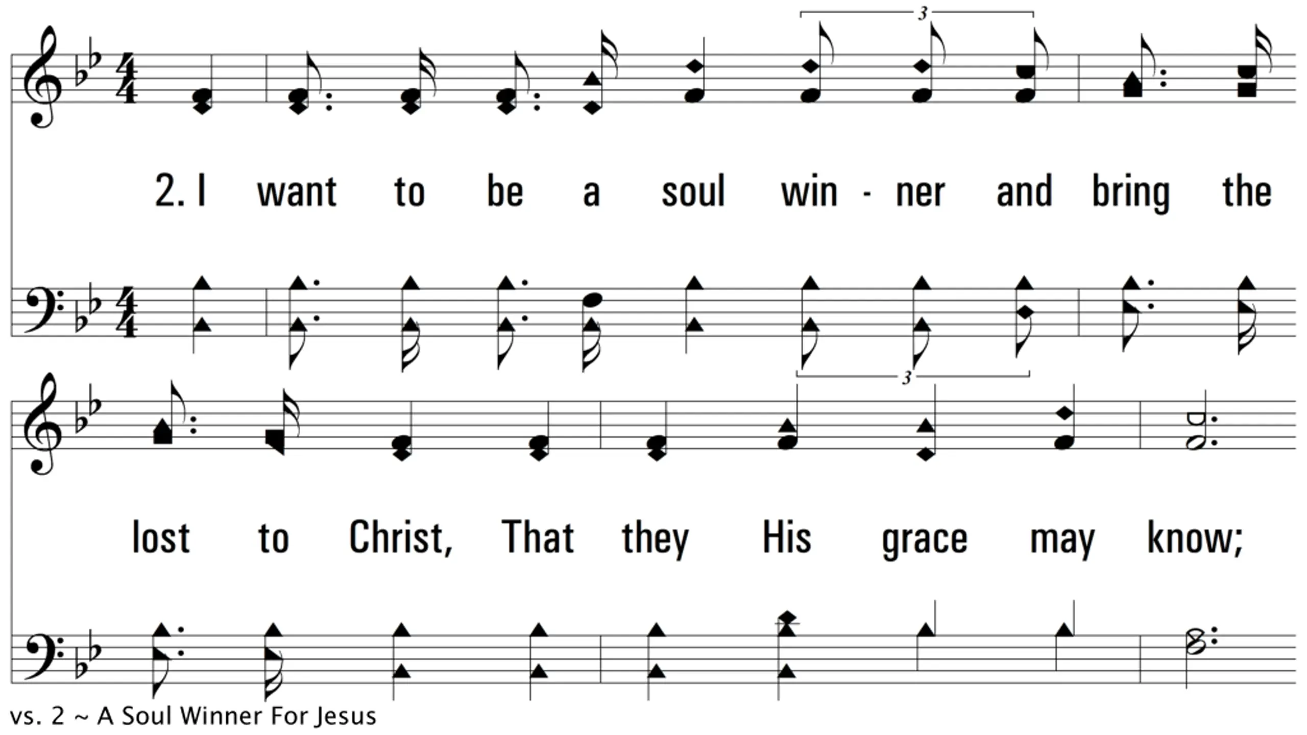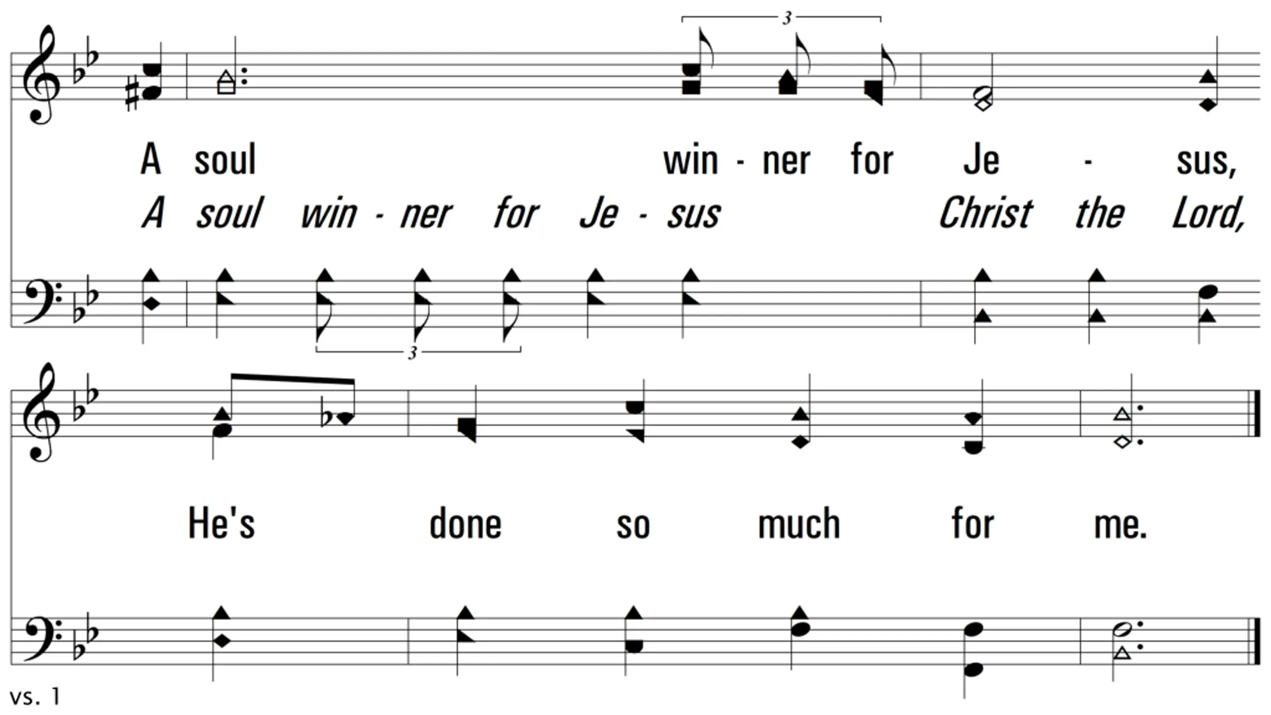 A Soul Winner For Jesus Words: J. W. Ferrill (1907) Music: J. W. Ferrill (1907) Lead - SOL Alto - MI Tenor - DO Bass - DO 4/4 Bb/F - SOL Verses: 3/Chorus PDHymns.com
