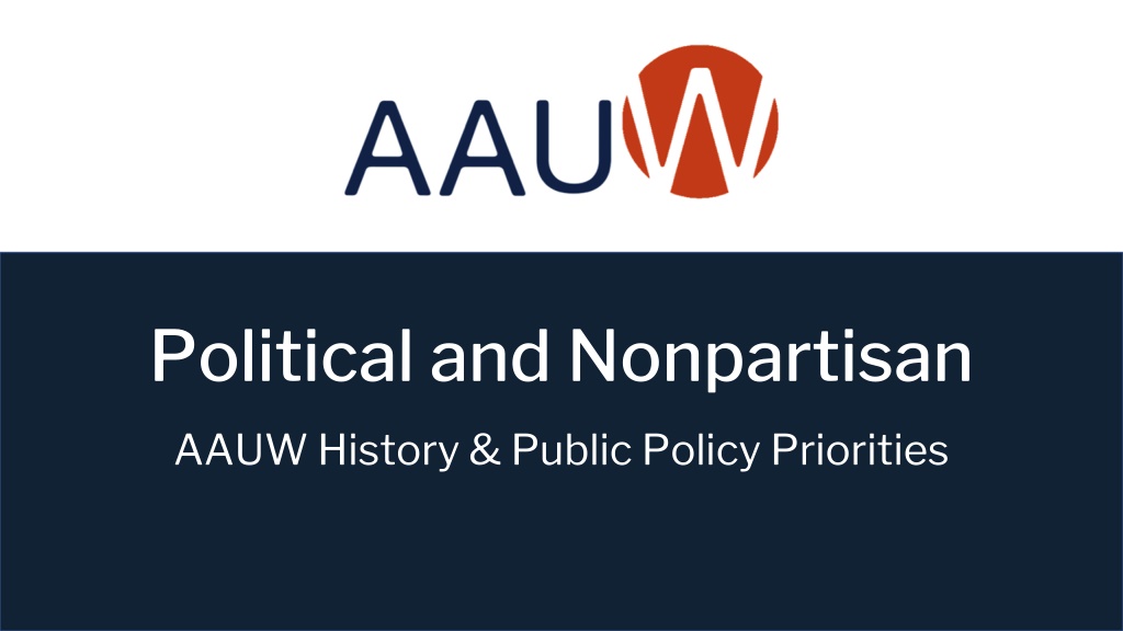 AAUW is nonpartisan nonpartisan but has always been political political. AAUW: Endorses legislation Takes political stands, dictated by member-adopted Public Policy Priorities Influences legislative debate on critical issues affecting women and girls Works with any policymaker from any party who cares about our priority issues and shares our goals