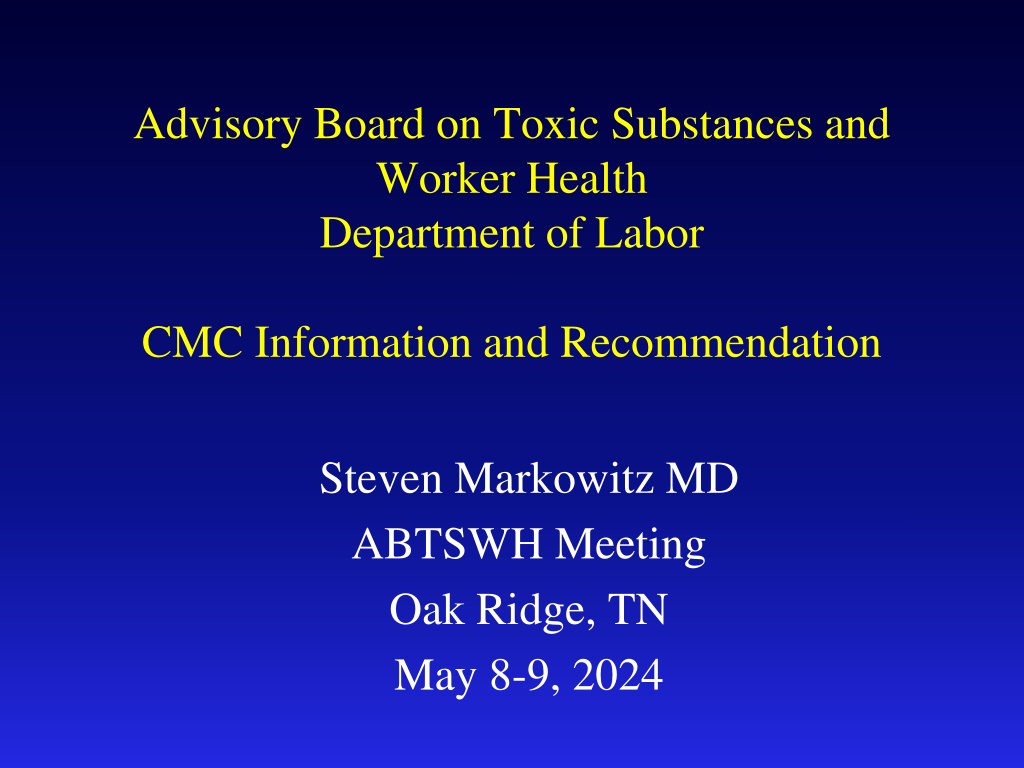Advisory Board on Toxic Substances and Worker Health Department of Labor CMC Information and Recommendation Steven Markowitz MD ABTSWH Meeting Oak Ridge, TN May 8-9, 2024