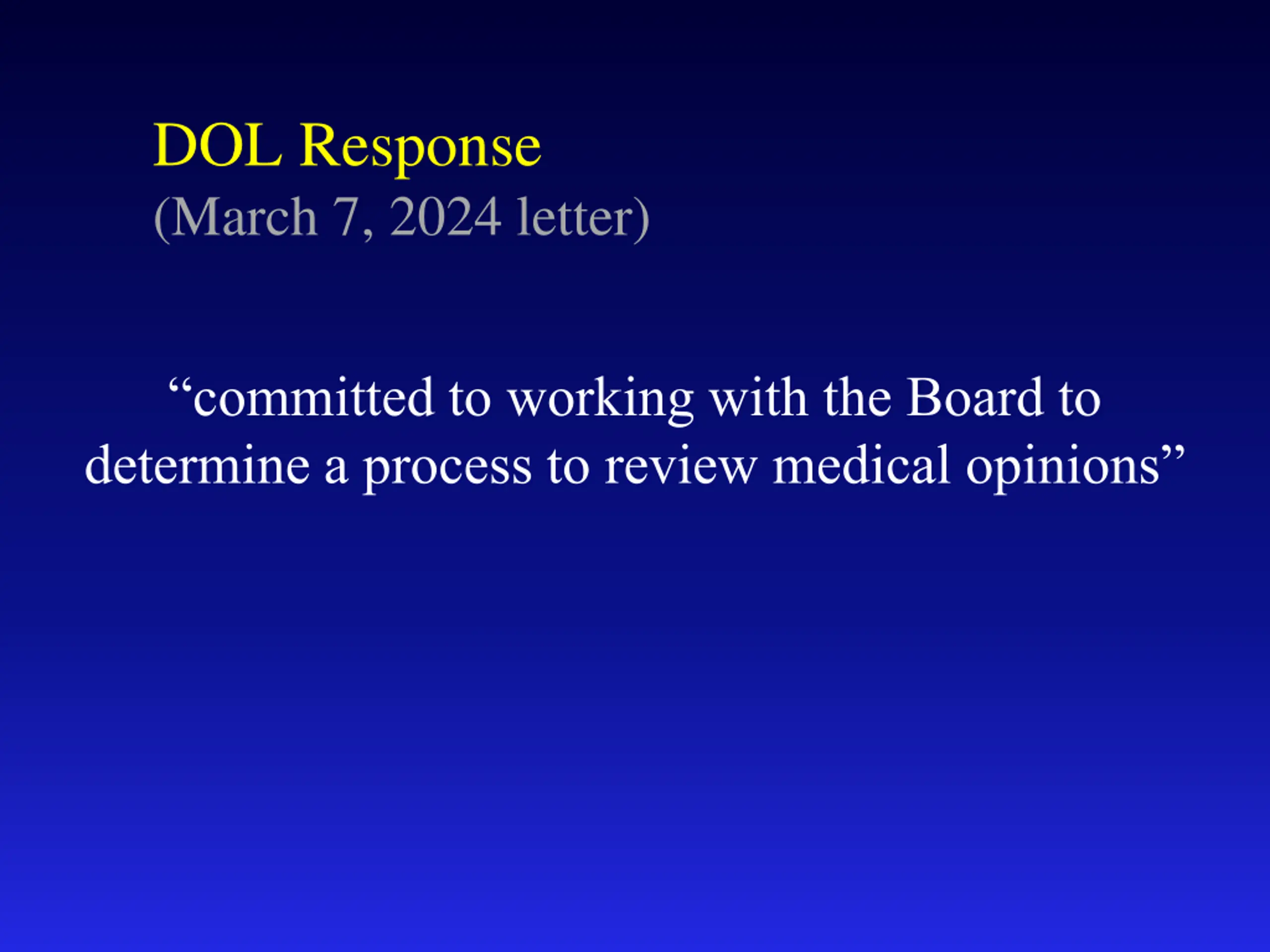 DOL Response (March 7, 2024 letter) committed to working with the Board to determine a process to review medical opinions