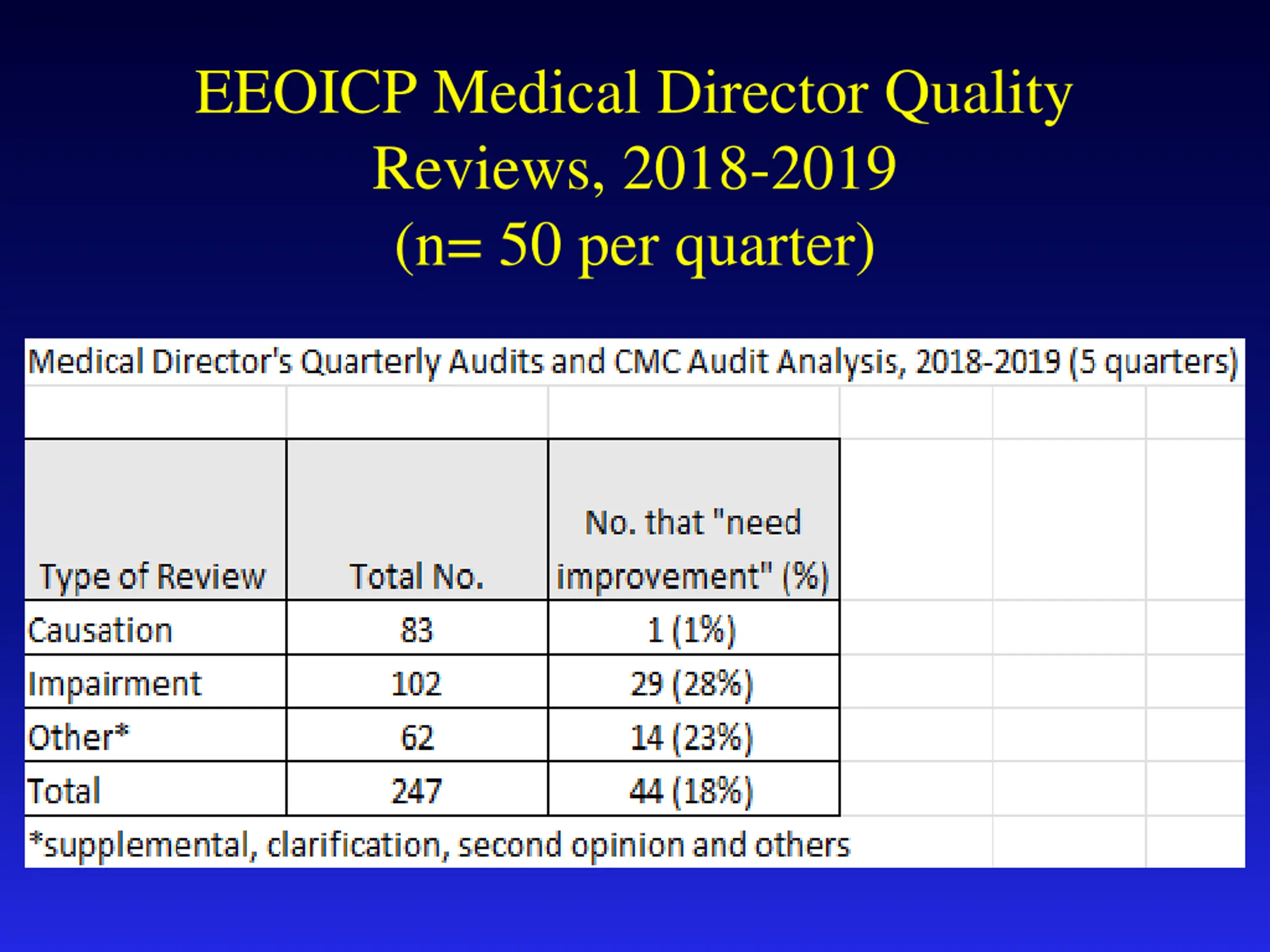 EEOICP Medical Director Quality Reviews, 2018-2019 (n= 50 per quarter)
