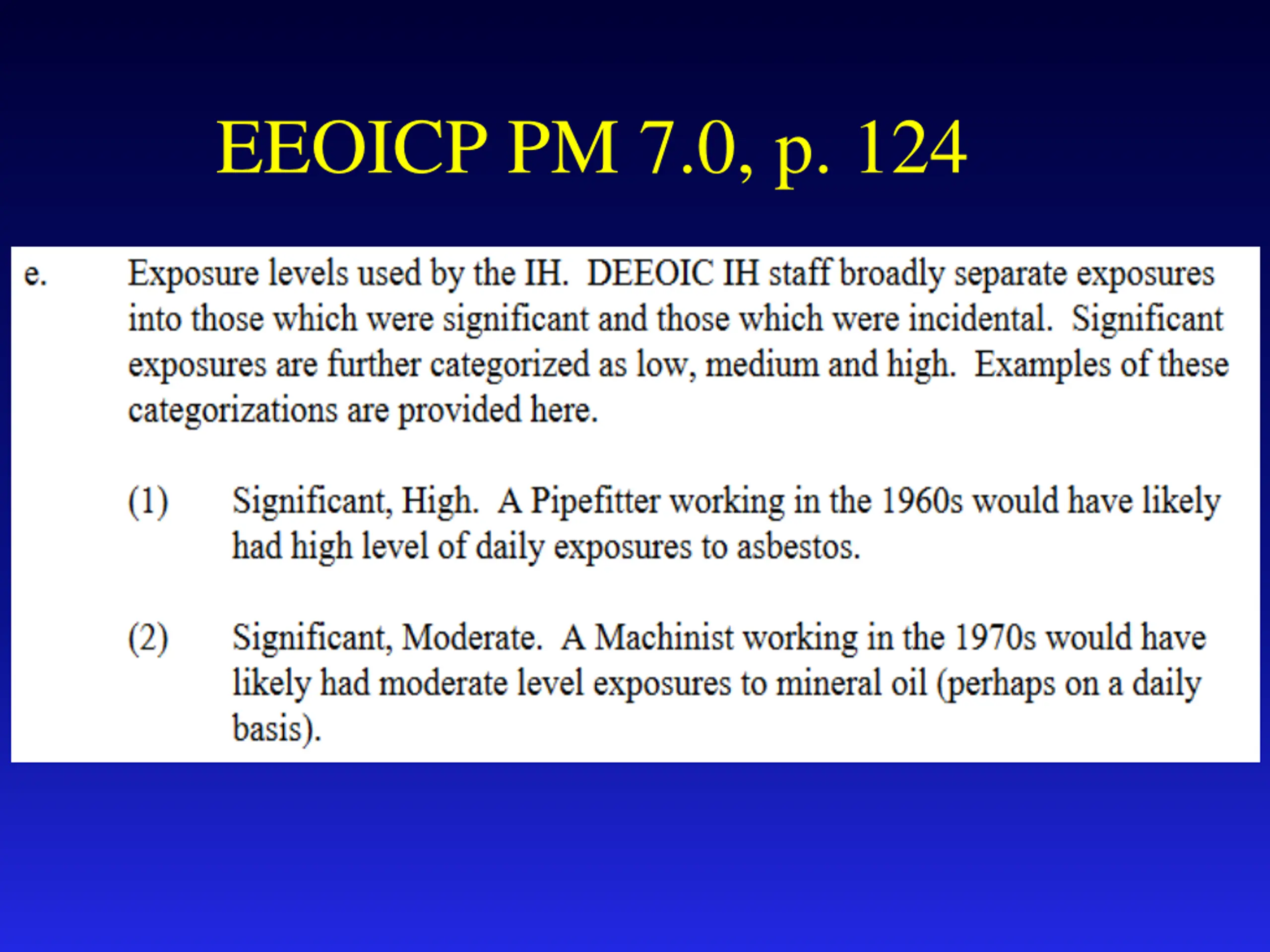Board Meeting, May 10-11, 2022 Board discussed new industrial hygiene conclusions in EEOICP IH reports: ~ there is no evidence that claimant s exposures exceeded regulatory standards