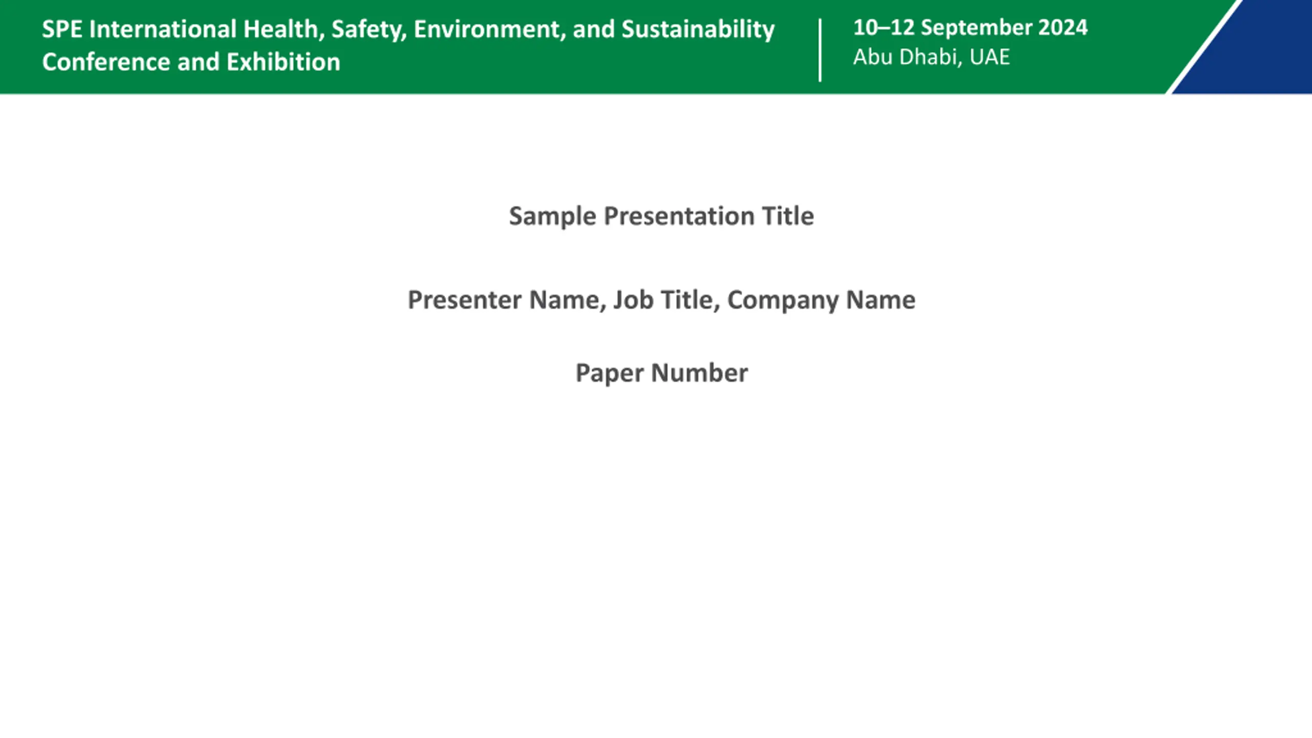 1012 September 2024 Abu Dhabi, UAE SPE International Health, Safety, Environment, and Sustainability Conference and Exhibition Sample Presentation Title Presenter Name, Job Title, Company Name Paper Number
