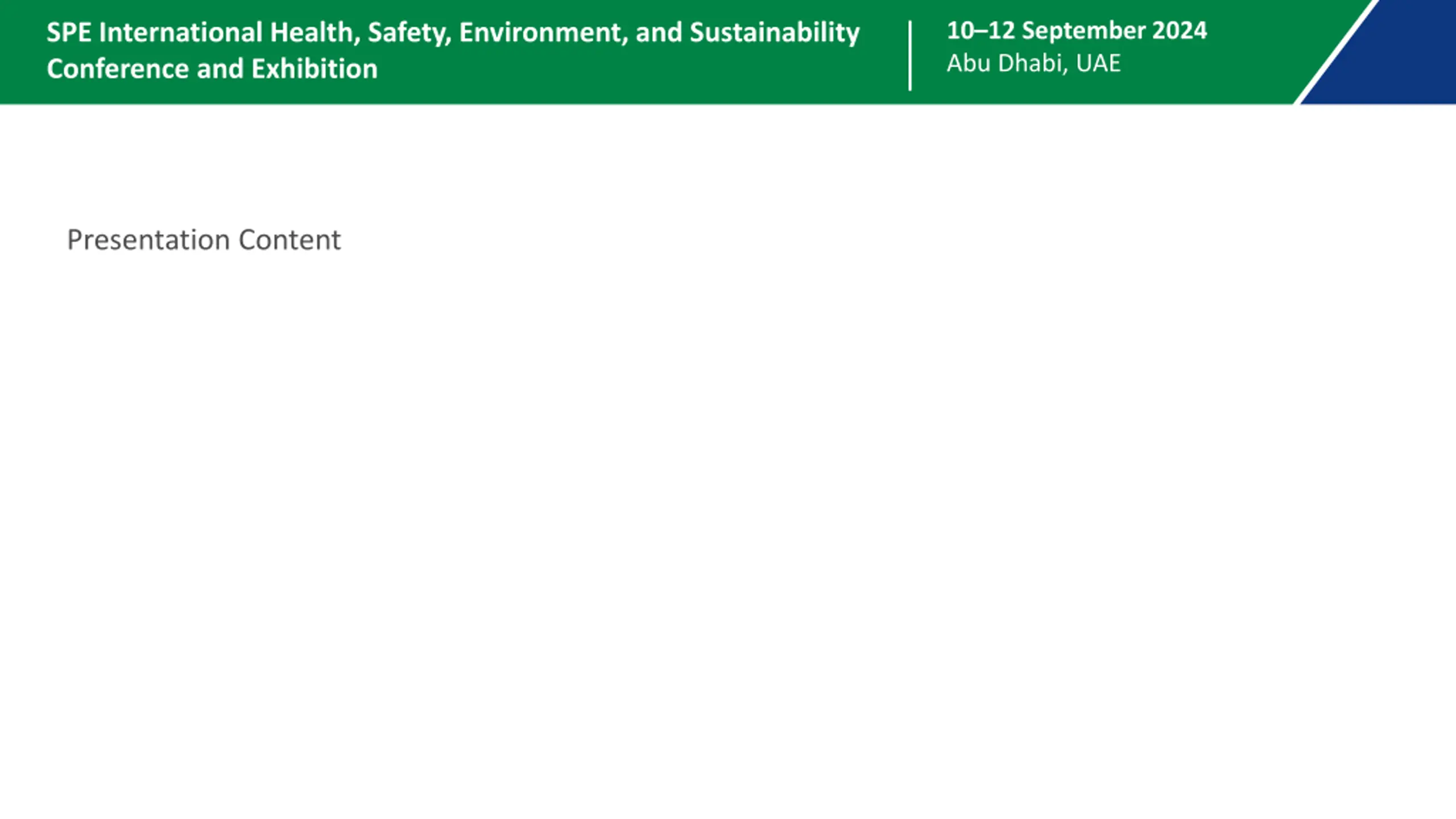 1012 September 2024 Abu Dhabi, UAE SPE International Health, Safety, Environment, and Sustainability Conference and Exhibition Presentation Content