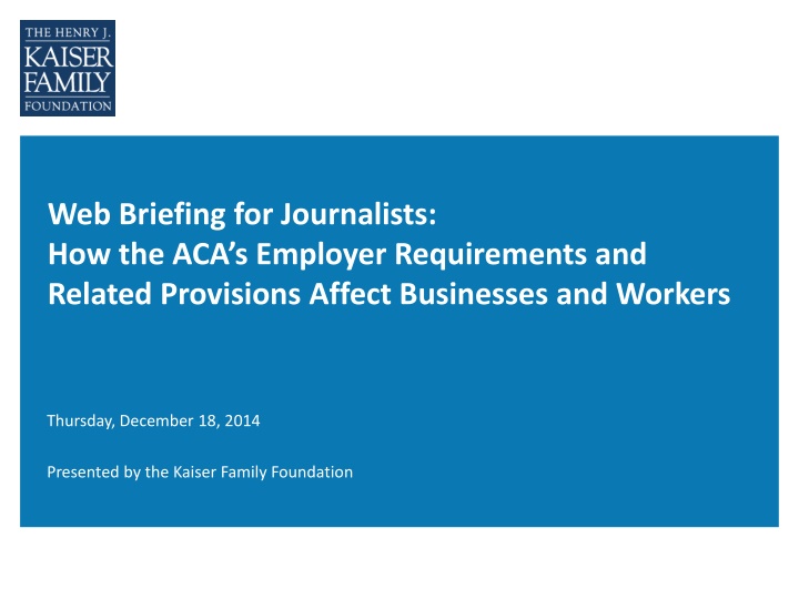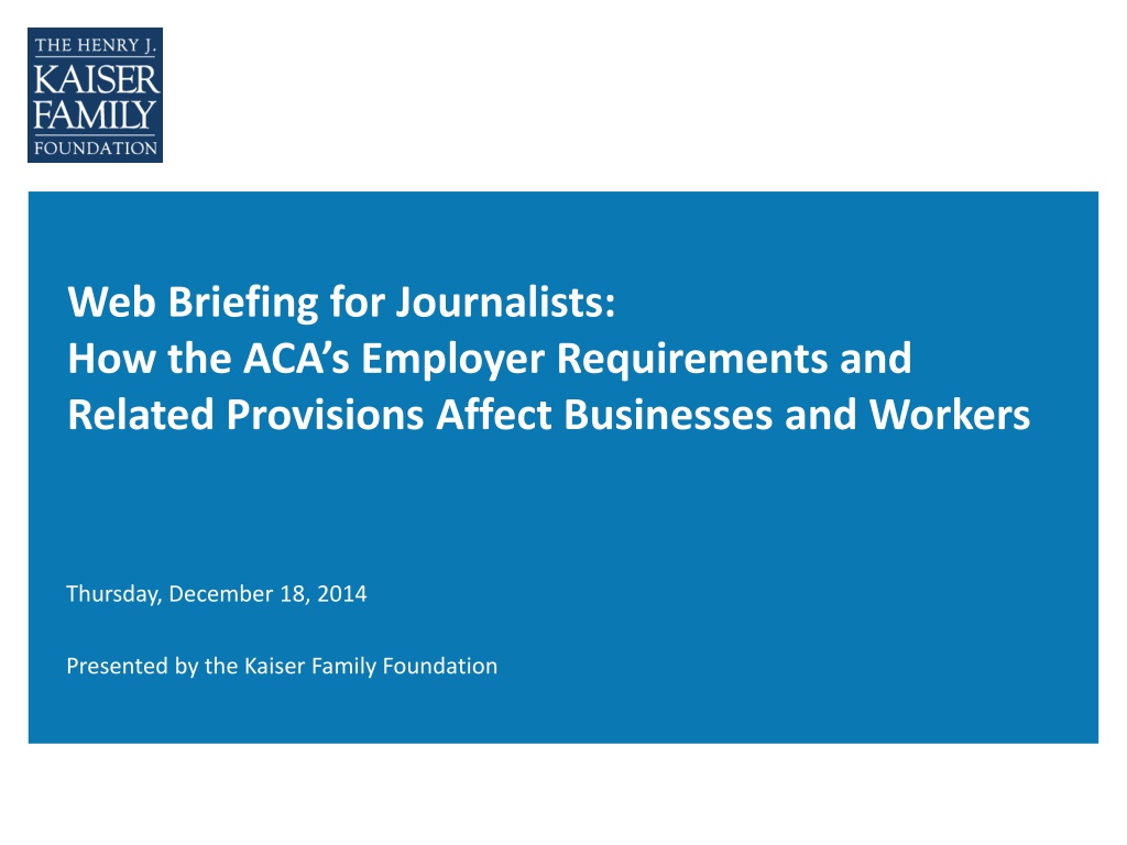 Web Briefing for Journalists: How the ACA s Employer Requirements and Related Provisions Affect Businesses and Workers Thursday, December 18, 2014 Presented by the Kaiser Family Foundation