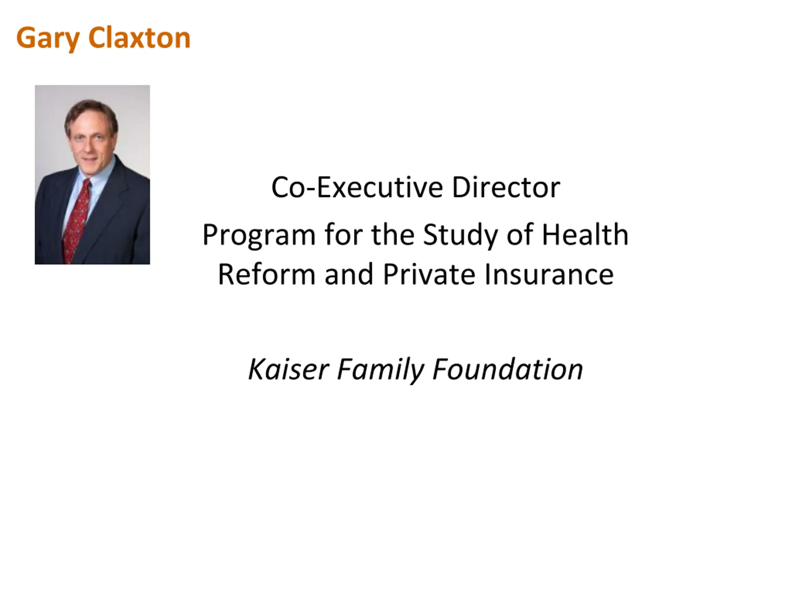 Gary Claxton Co-Executive Director Program for the Study of Health Reform and Private Insurance Kaiser Family Foundation