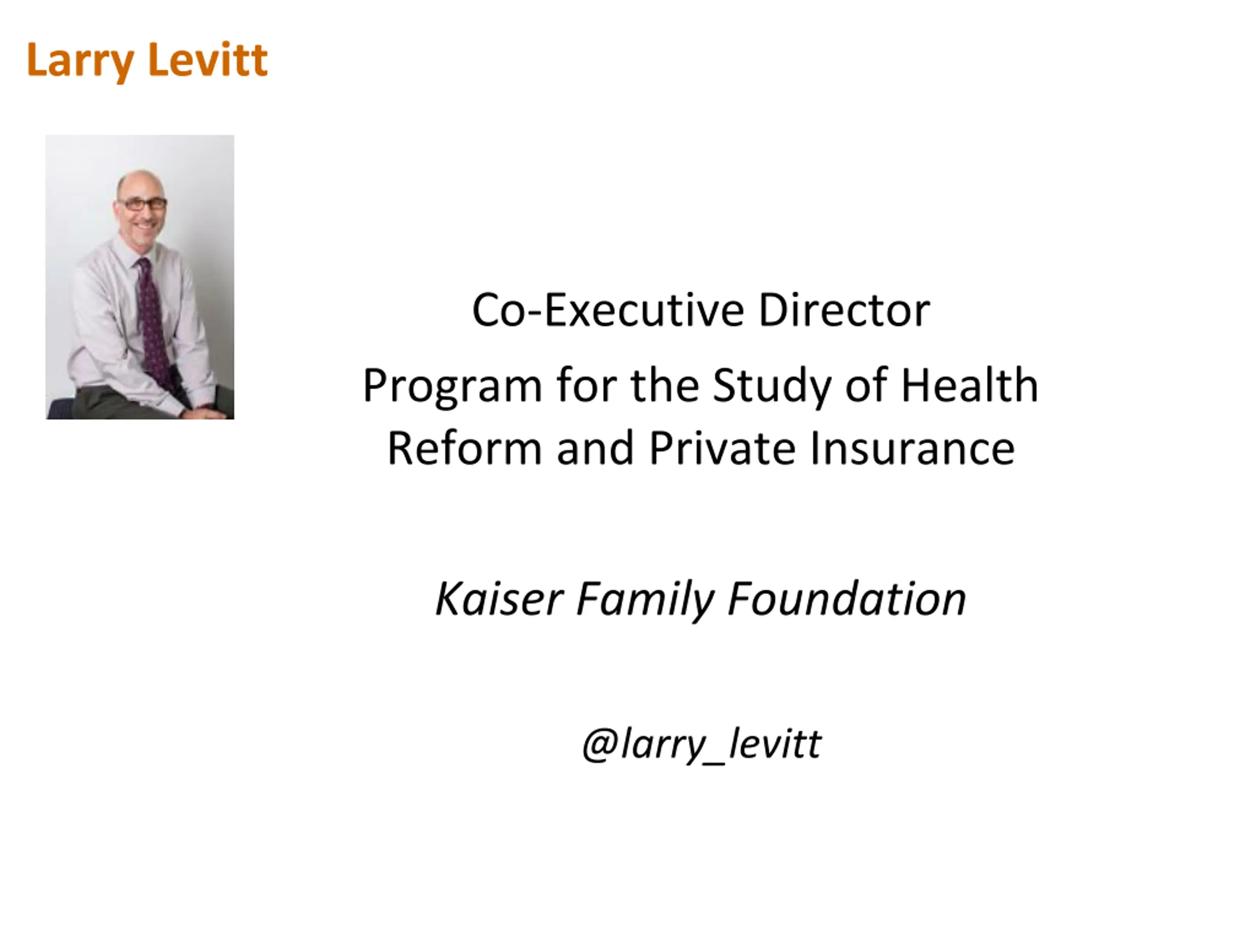 Larry Levitt Co-Executive Director Program for the Study of Health Reform and Private Insurance Kaiser Family Foundation @larry_levitt