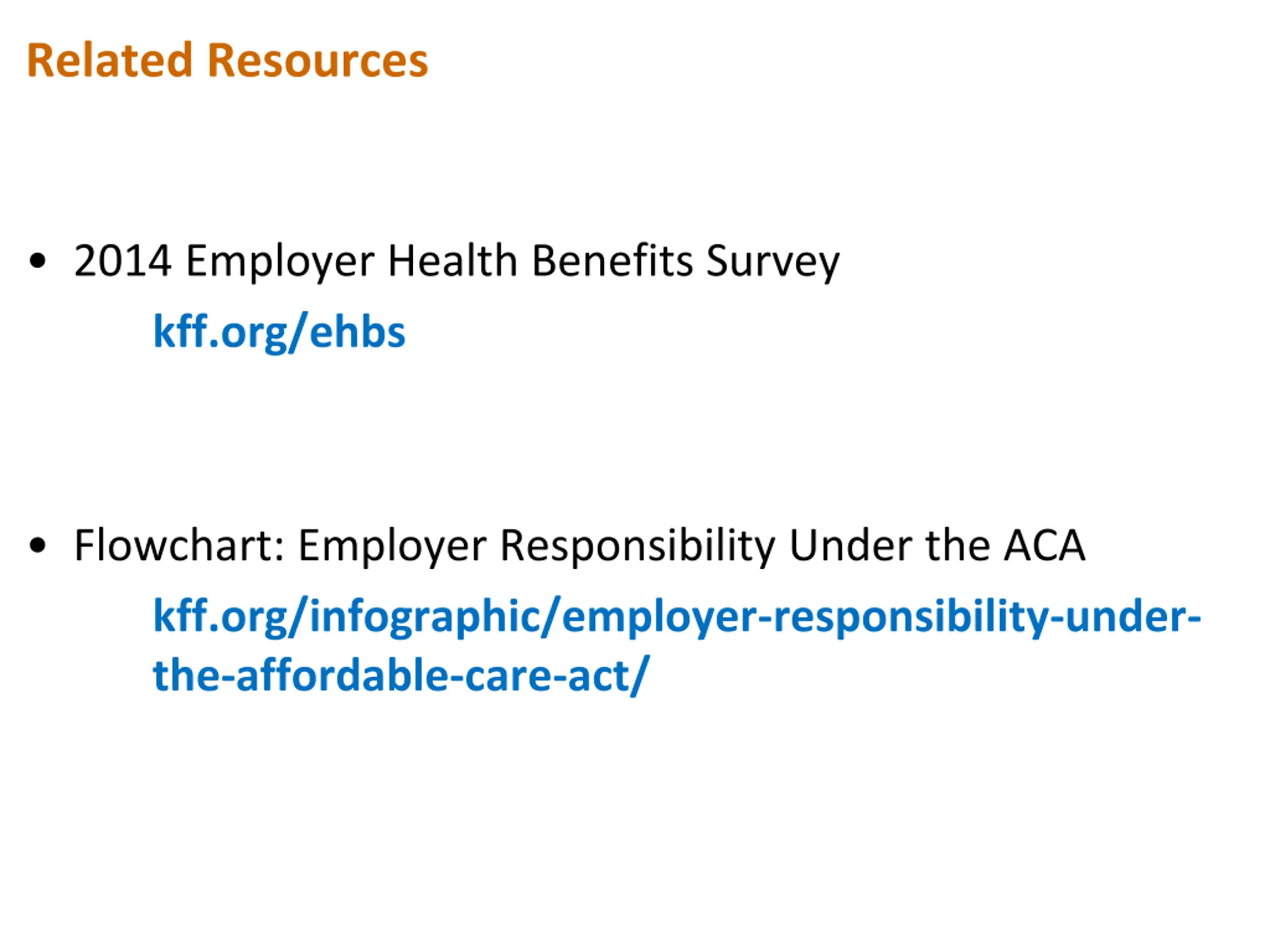 Related Resources 2014 Employer Health Benefits Survey kff.org/ehbs Flowchart: Employer Responsibility Under the ACA kff.org/infographic/employer-responsibility-under- the-affordable-care-act/