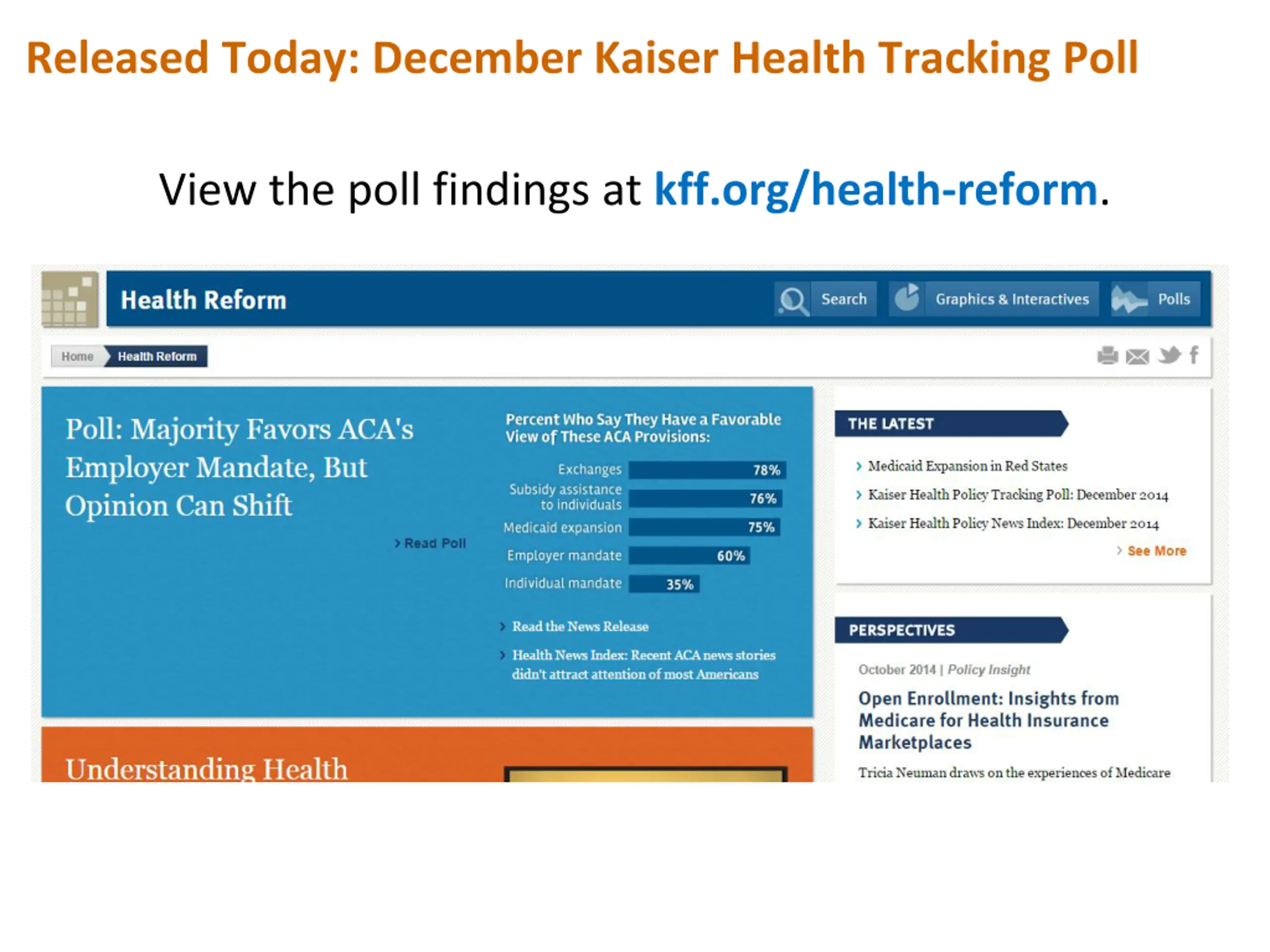 Released Today: December Kaiser Health Tracking Poll View the poll findings at kff.org/health-reform.