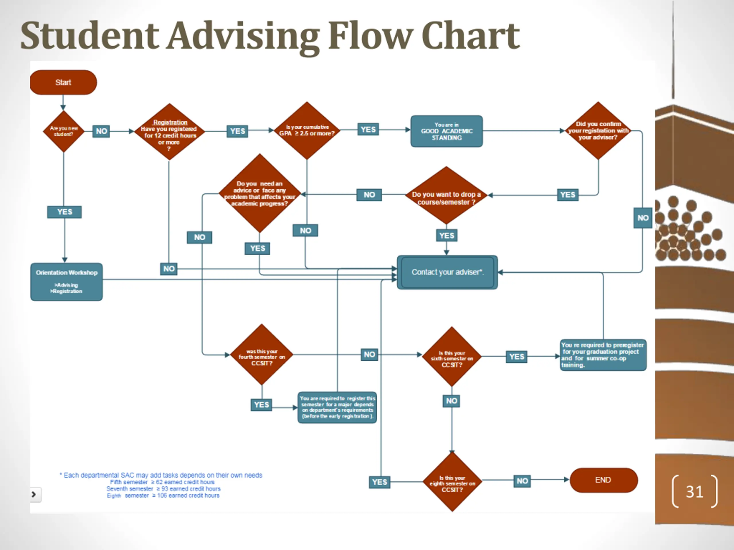 Supporting Materials Advising Flowchart, A visual guide that shows, in simple steps, when the students must contact an adviser. 30