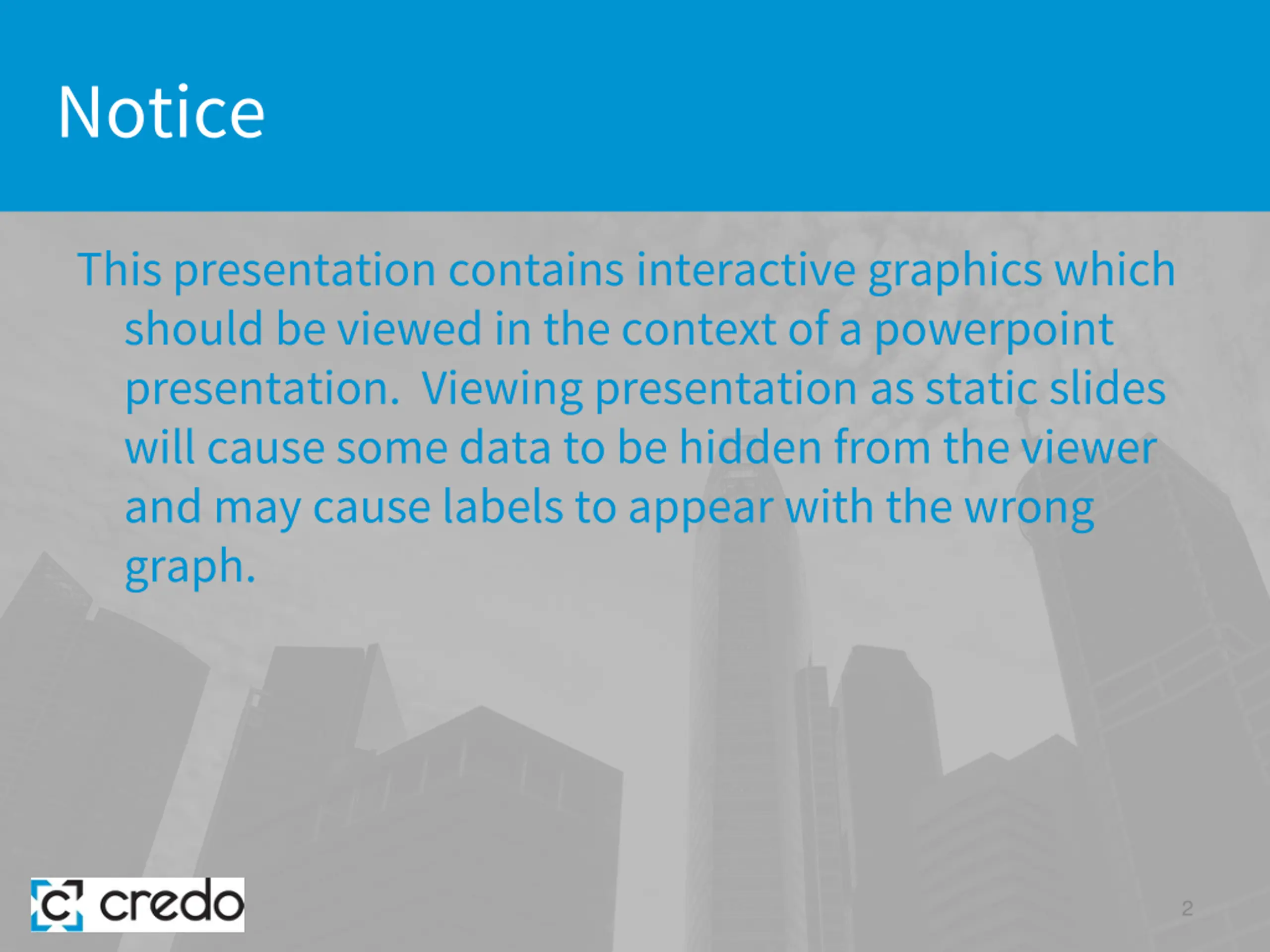 Notice This presentation contains interactive graphics which should be viewed in the context of a powerpoint presentation. Viewing presentation as static slides will cause some data to be hidden from the viewer and may cause labels to appear with the wrong graph. 2