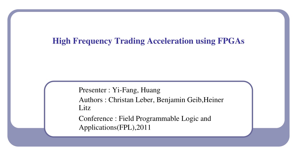 Explore how high frequency trading is accelerated using Field Programmable Gate Arrays (FPGAs) in this comprehensive presentation. Delve into the implementation and evaluation of this innovative approach to trading technology.