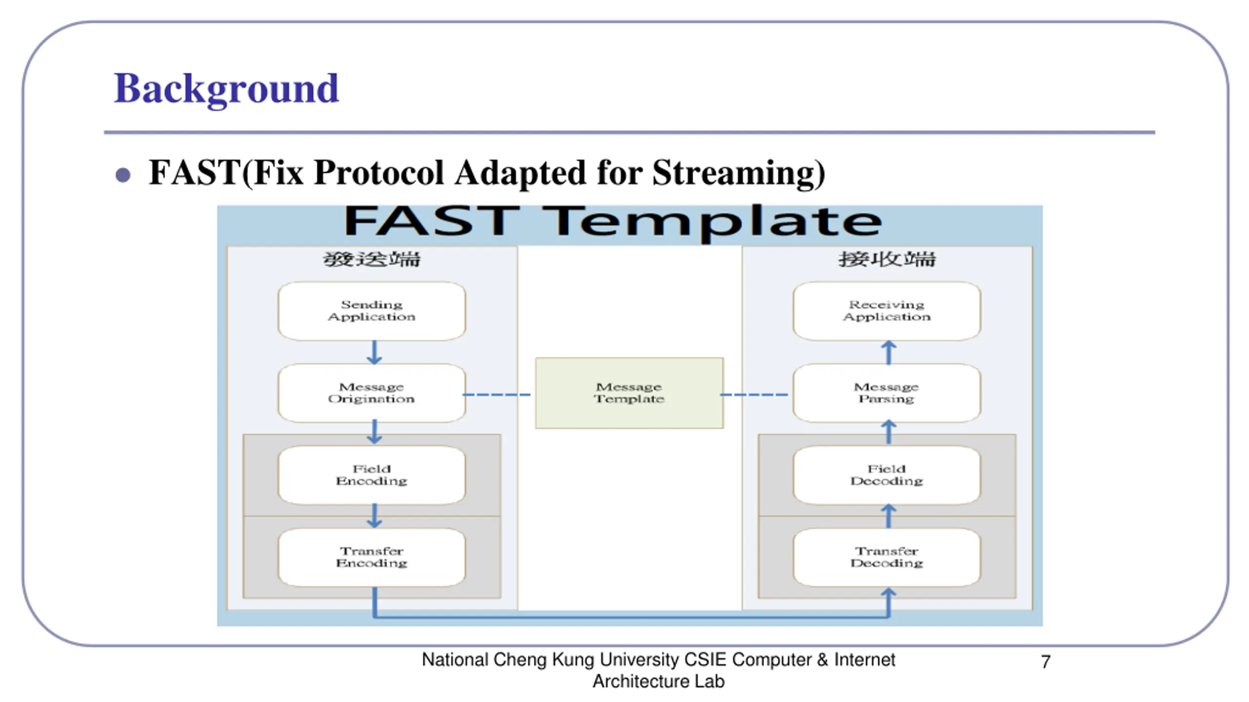 Background FAST(Fix Protocol Adapted for Streaming) National Cheng Kung University CSIE Computer & Internet Architecture Lab 7