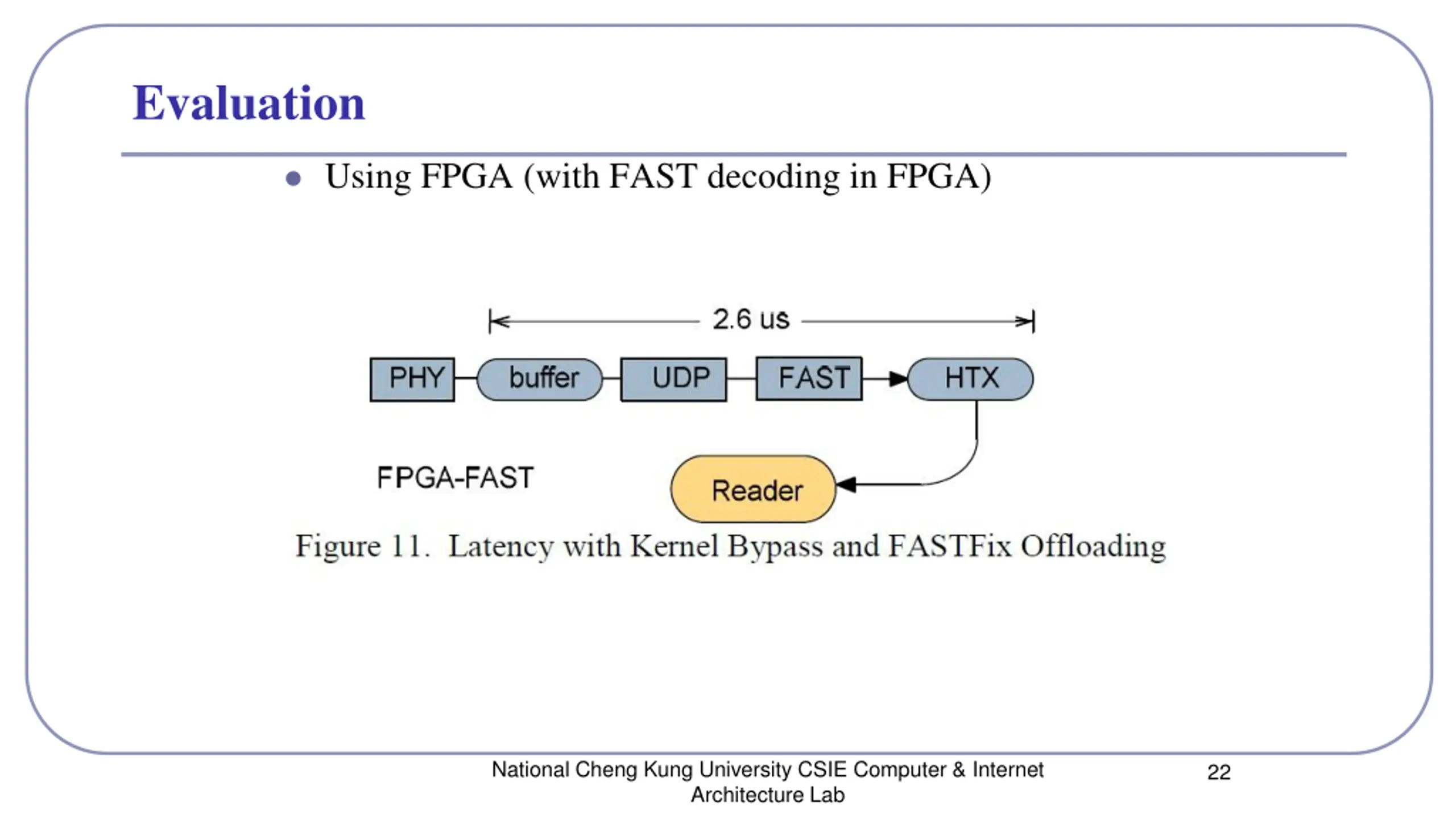 Evaluation Using FPGA (without FAST decoding in FPGA) National Cheng Kung University CSIE Computer & Internet Architecture Lab 21