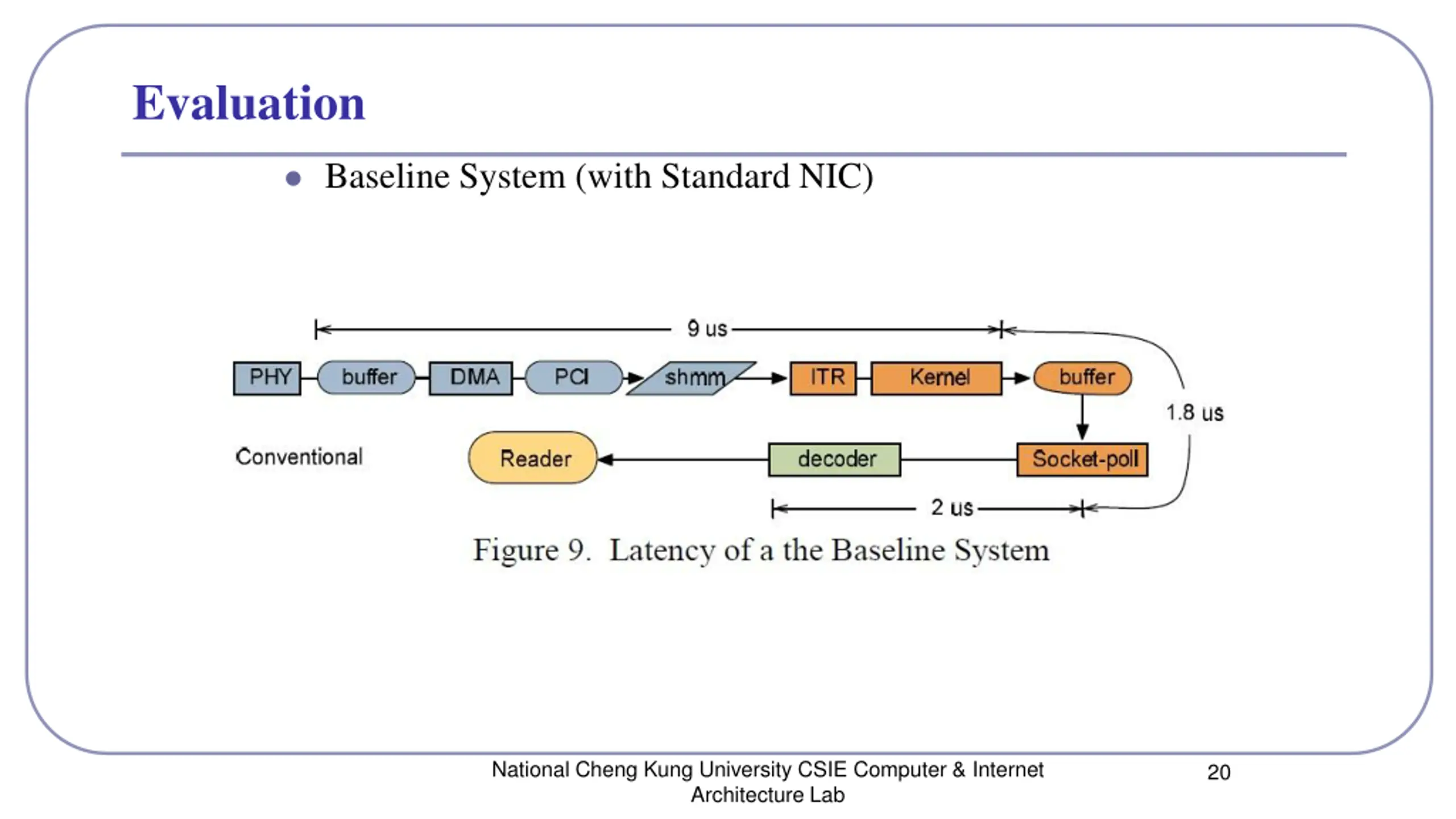 Evaluation Baseline System (with Standard NIC) National Cheng Kung University CSIE Computer & Internet Architecture Lab 20