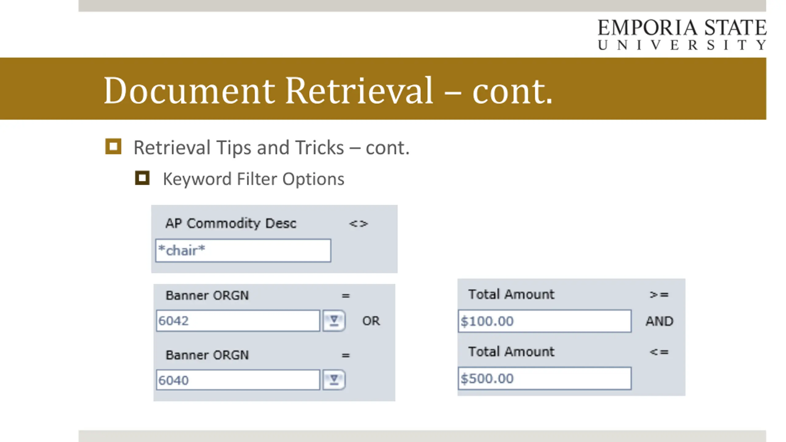 Document Retrieval cont. Retrieval Tips and Tricks cont. Keyword Filter Options