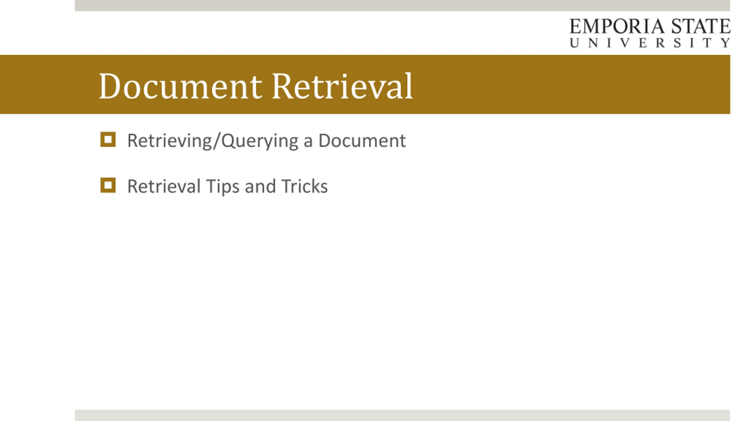 Document Retrieval Retrieving/Querying a Document Retrieval Tips and Tricks
