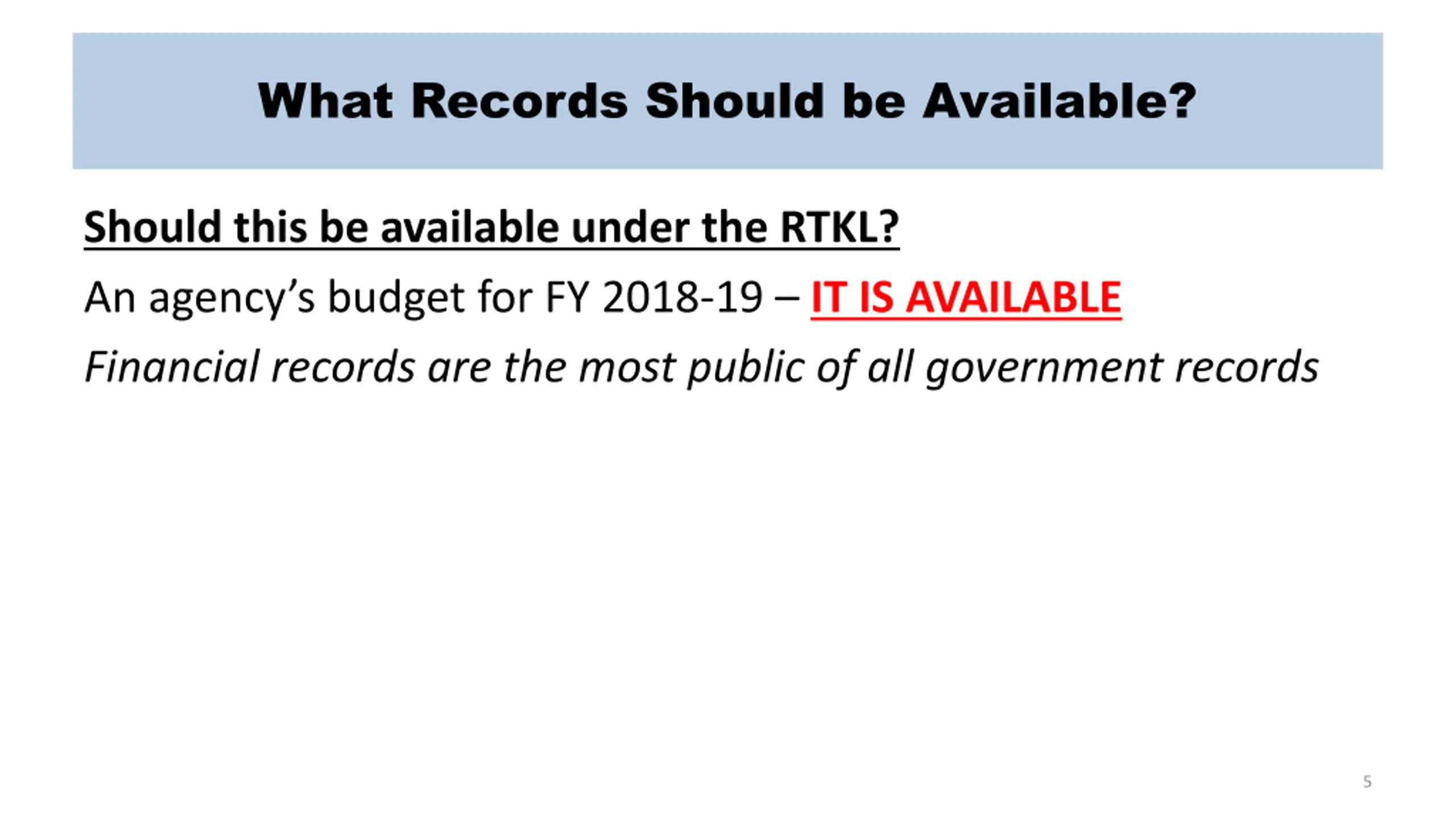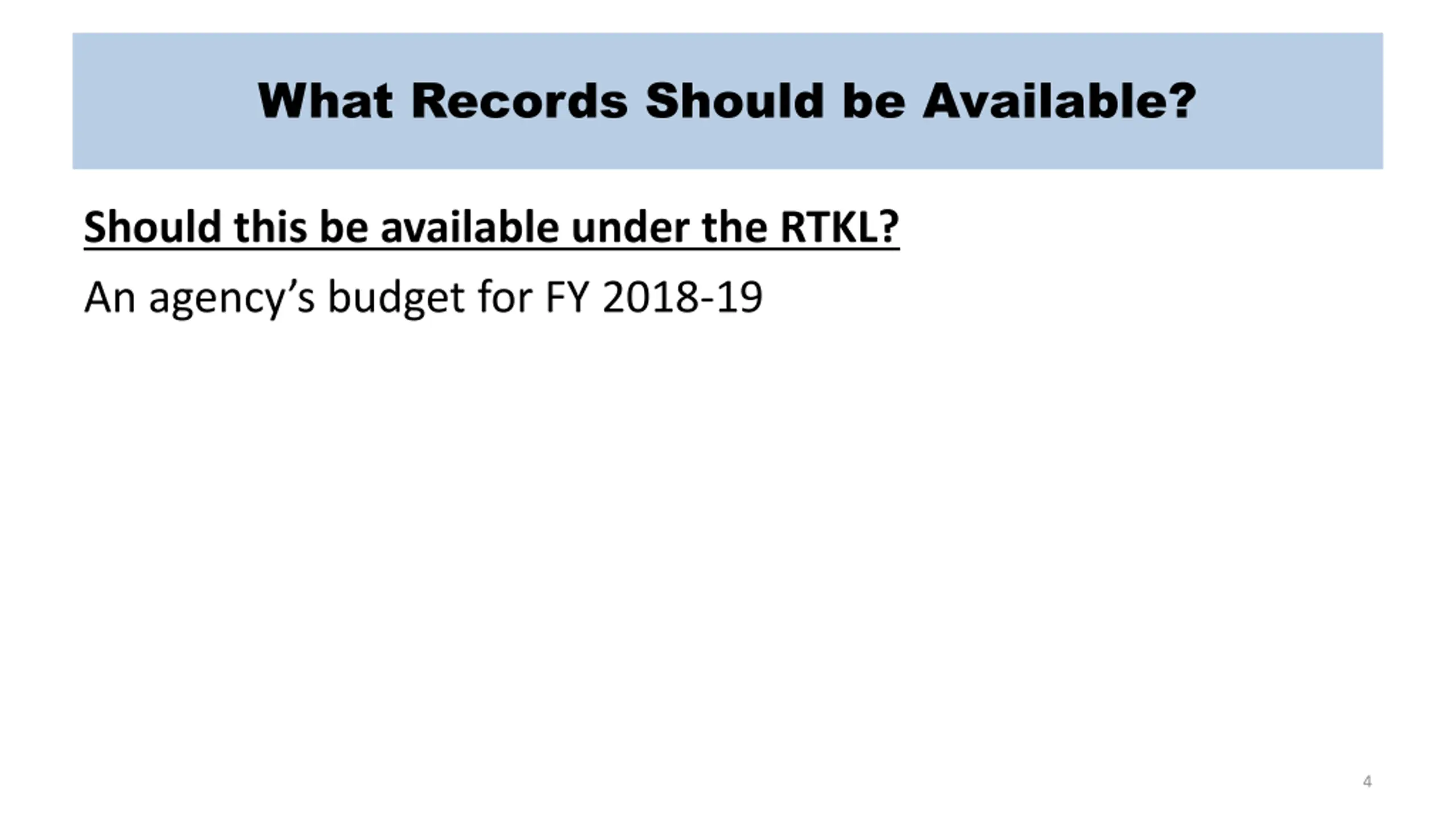 What Records Should be Available? Should this be available under the RTKL? An agency s budget for FY 2018-19 4