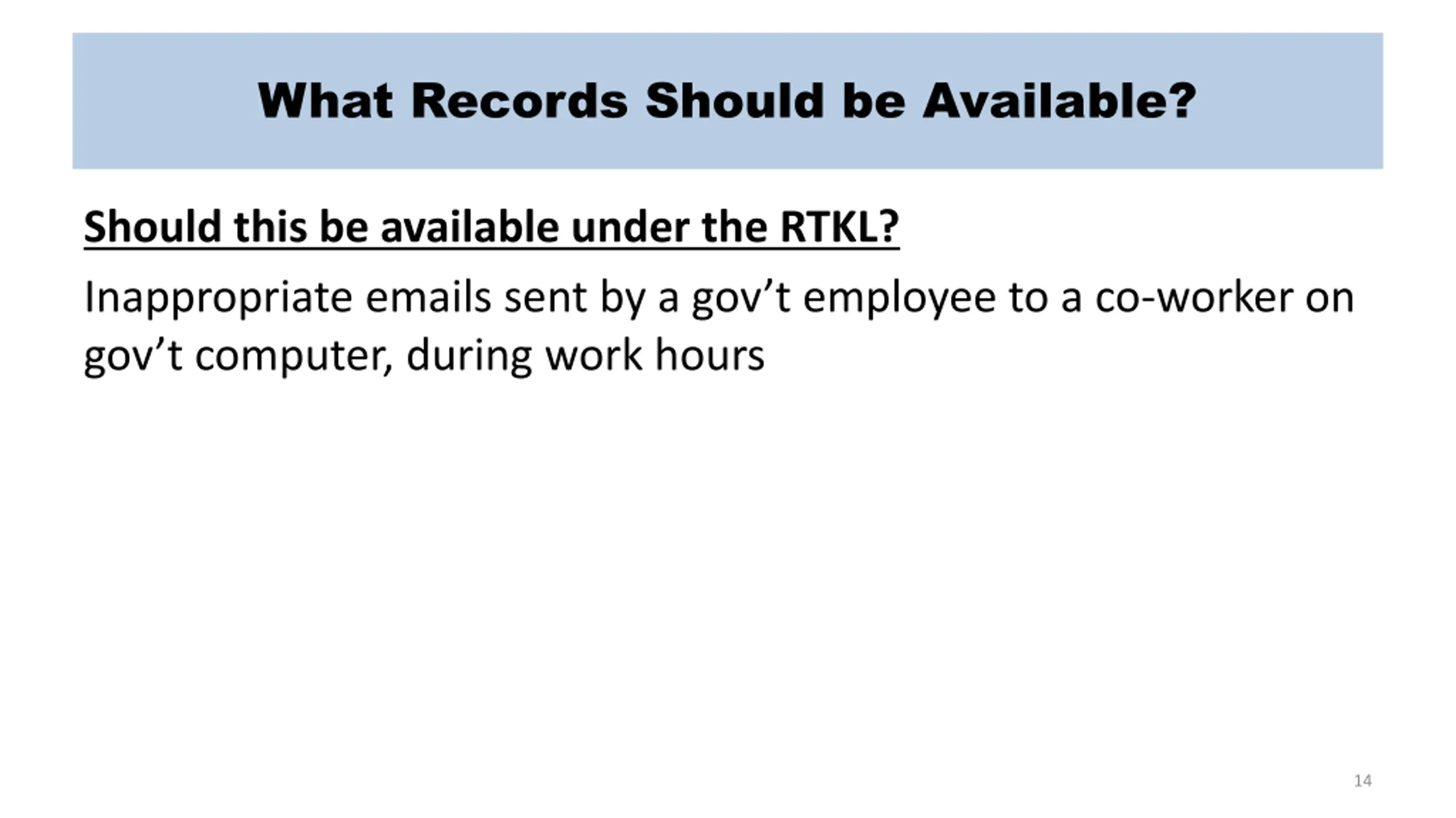 What Records Should be Available? Should this be available under the RTKL? Inappropriate emails sent by a gov t employee to a co-worker on gov t computer, during work hours 14