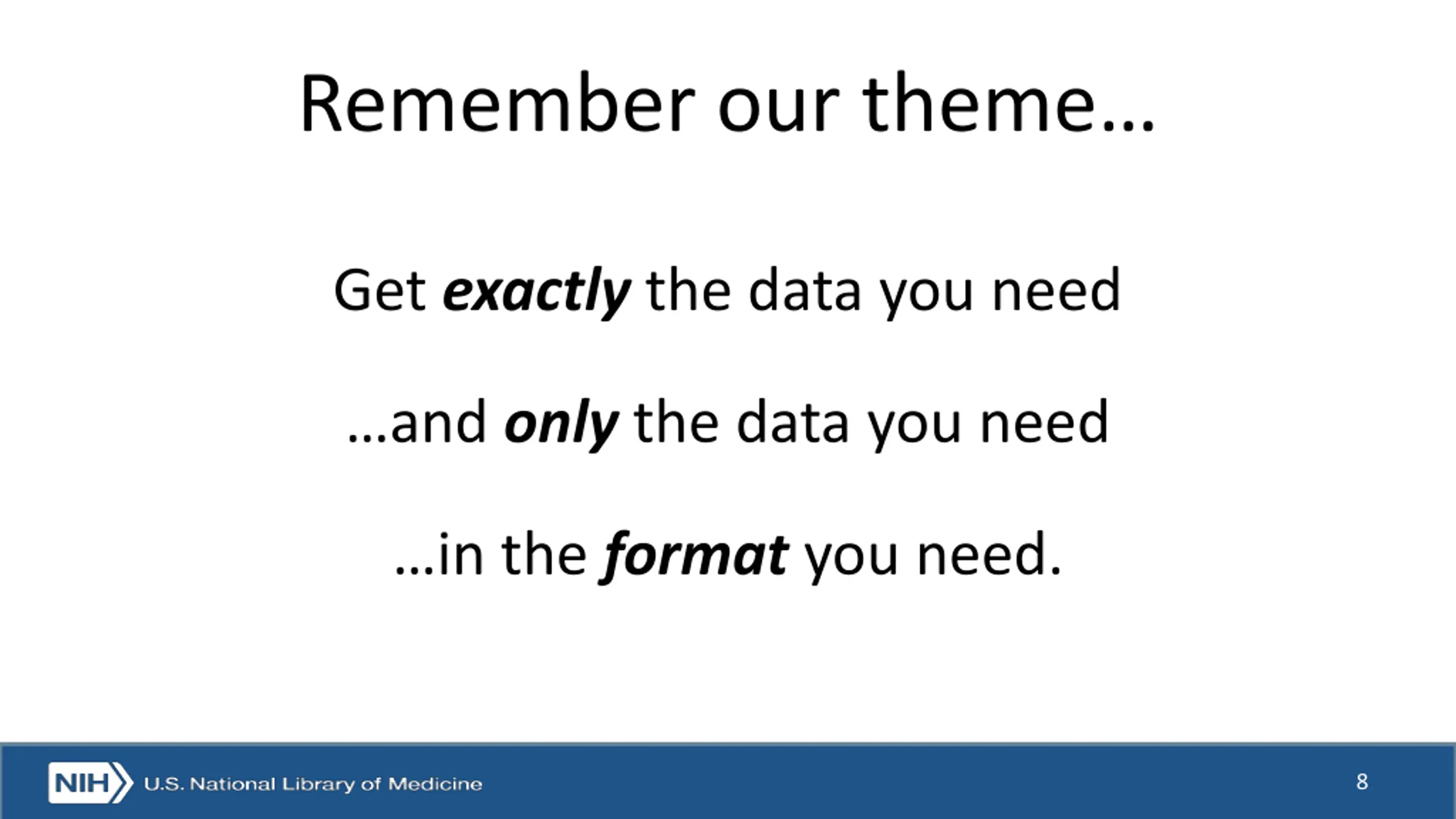 Remember our theme Get exactly the data you need and only the data you need in the format you need. 8