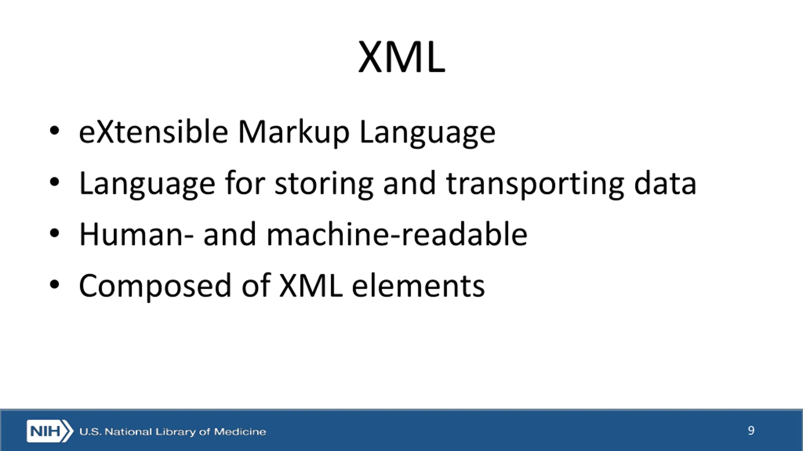 XML eXtensible Markup Language Language for storing and transporting data Human- and machine-readable Composed of XML elements 9