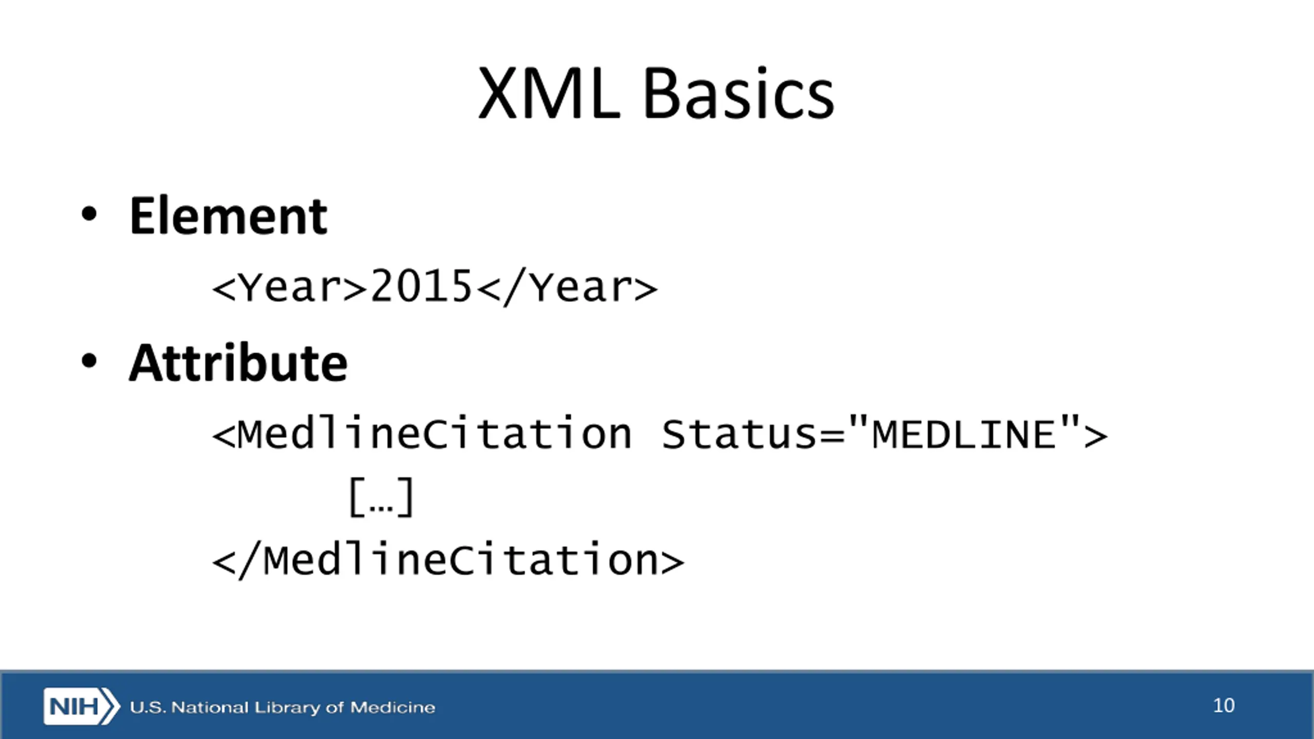 XML Basics Element Attribute <MedlineCitation Status="MEDLINE"> [ ] </MedlineCitation> <Year>2015</Year> 10