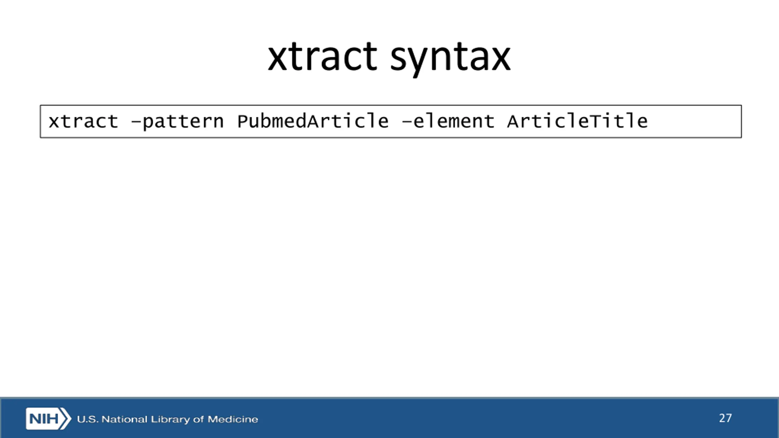 xtract syntax xtract pattern PubmedArticle element ArticleTitle 27