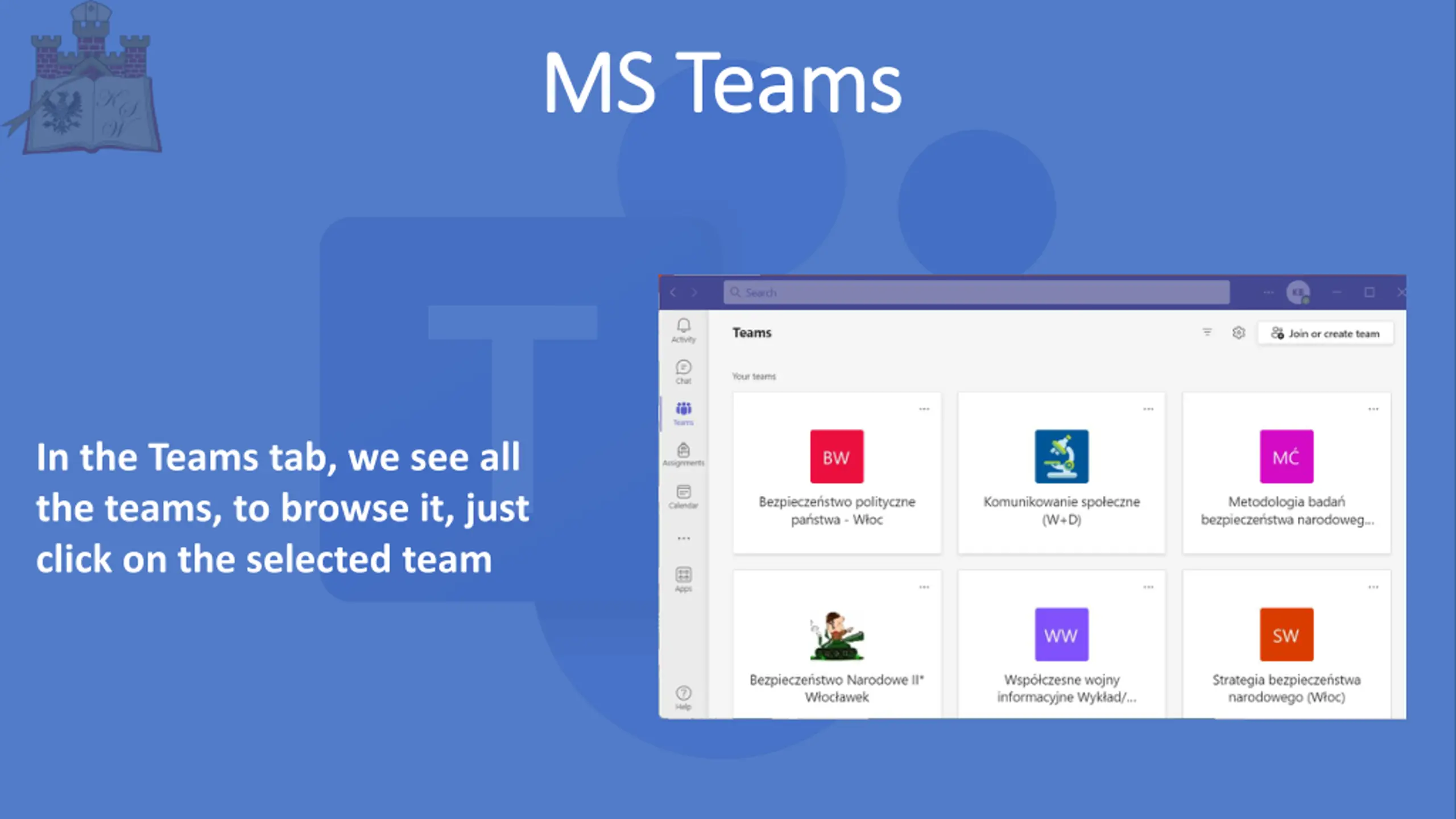 MS MS Teams Teams In the Teams tab, we see all the teams, to browse it, just click on the selected team