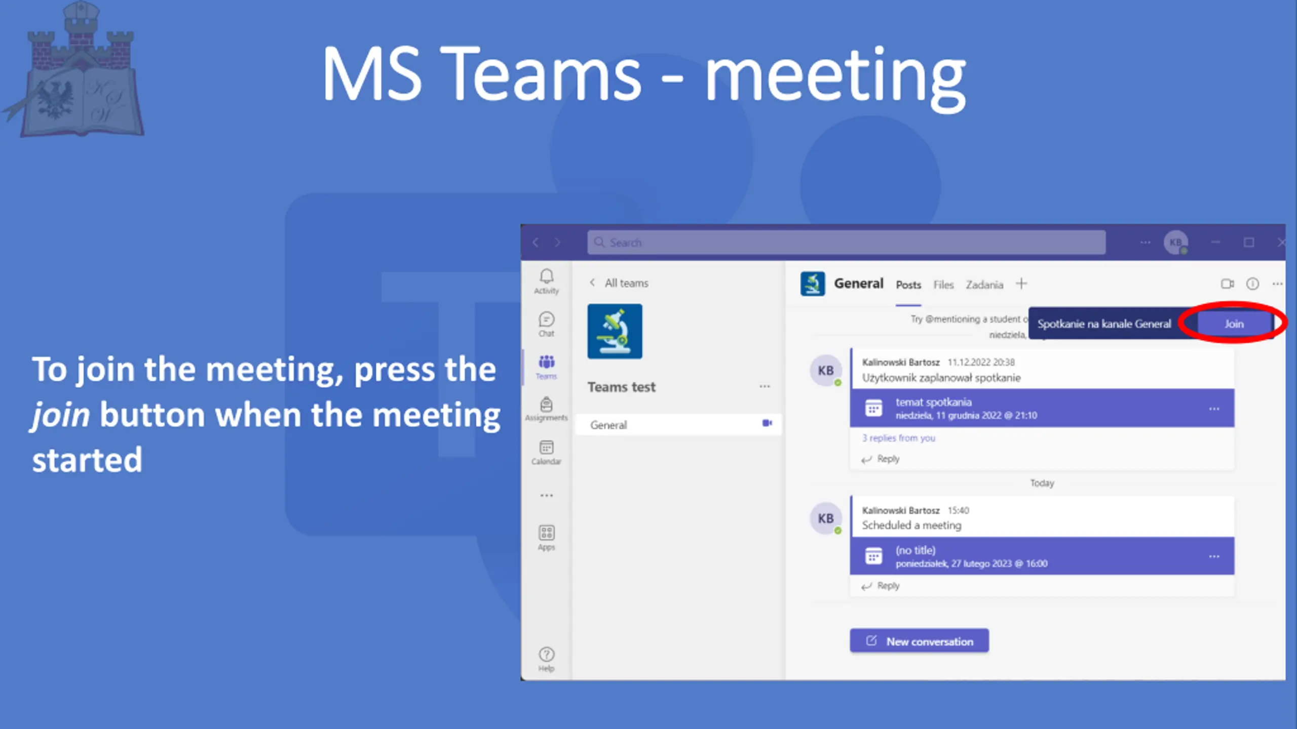 MS MS Teams Teams - - meeting meeting To join the meeting, press the join button when the meeting started