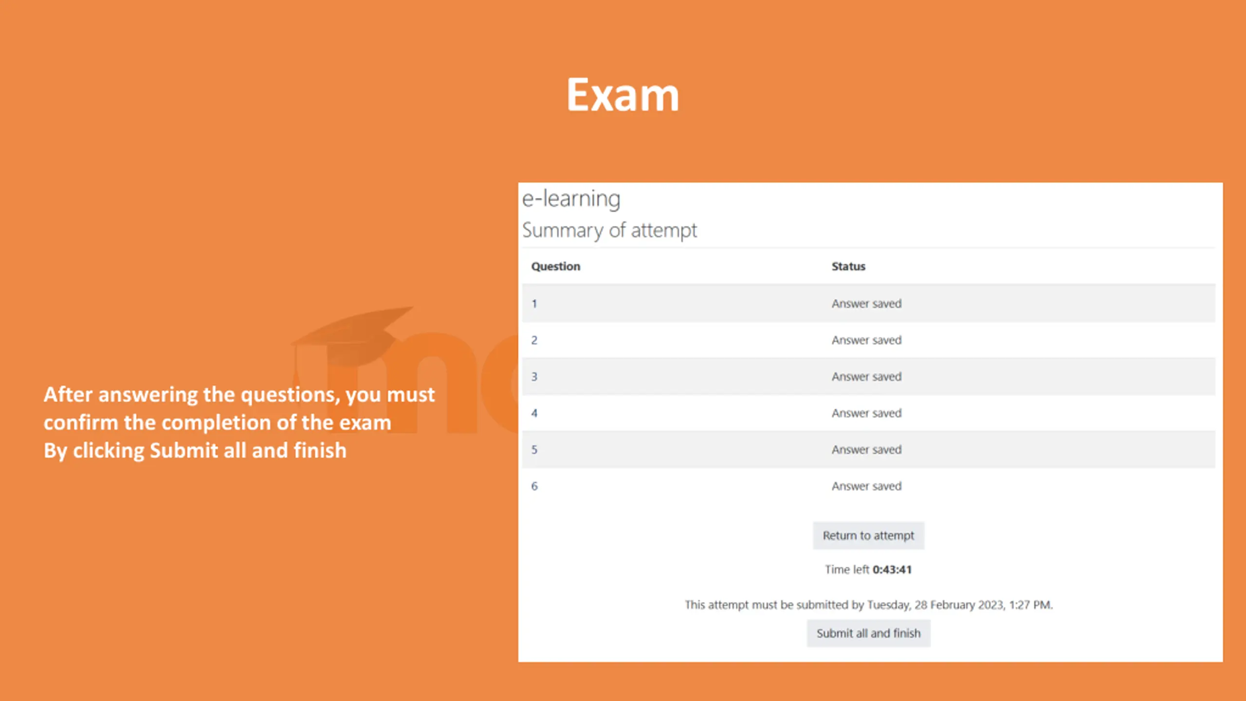 Exam After answering the questions, you must confirm the completion of the exam By clicking Submit all and finish