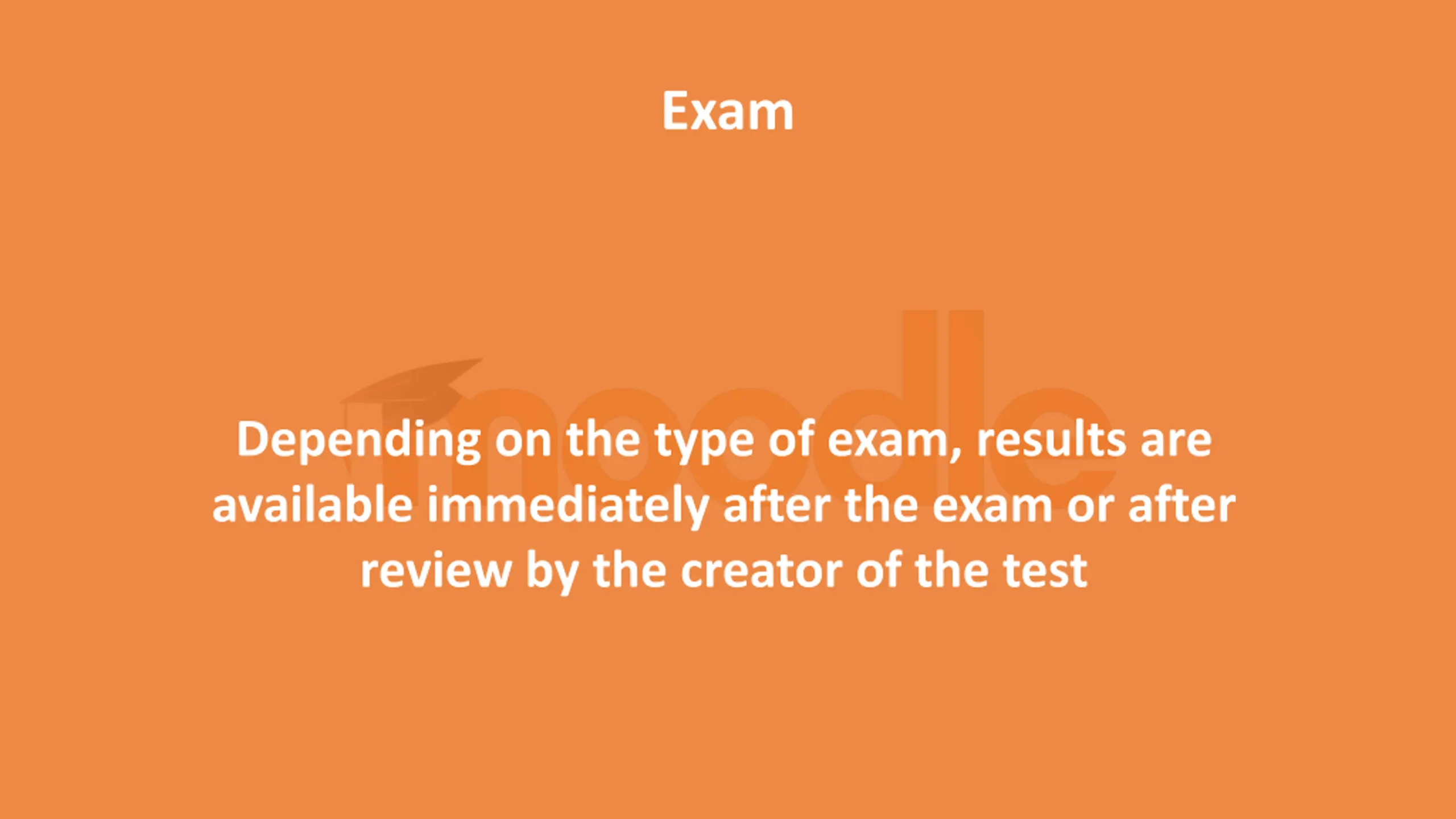 Exam Depending on the type of exam, results are available immediately after the exam or after review by the creator of the test
