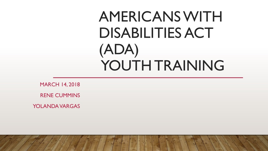 AMERICANS WITH DISABILITIES ACT (ADA) YOUTH TRAINING MARCH 14, 2018 RENE CUMMINS YOLANDA VARGAS