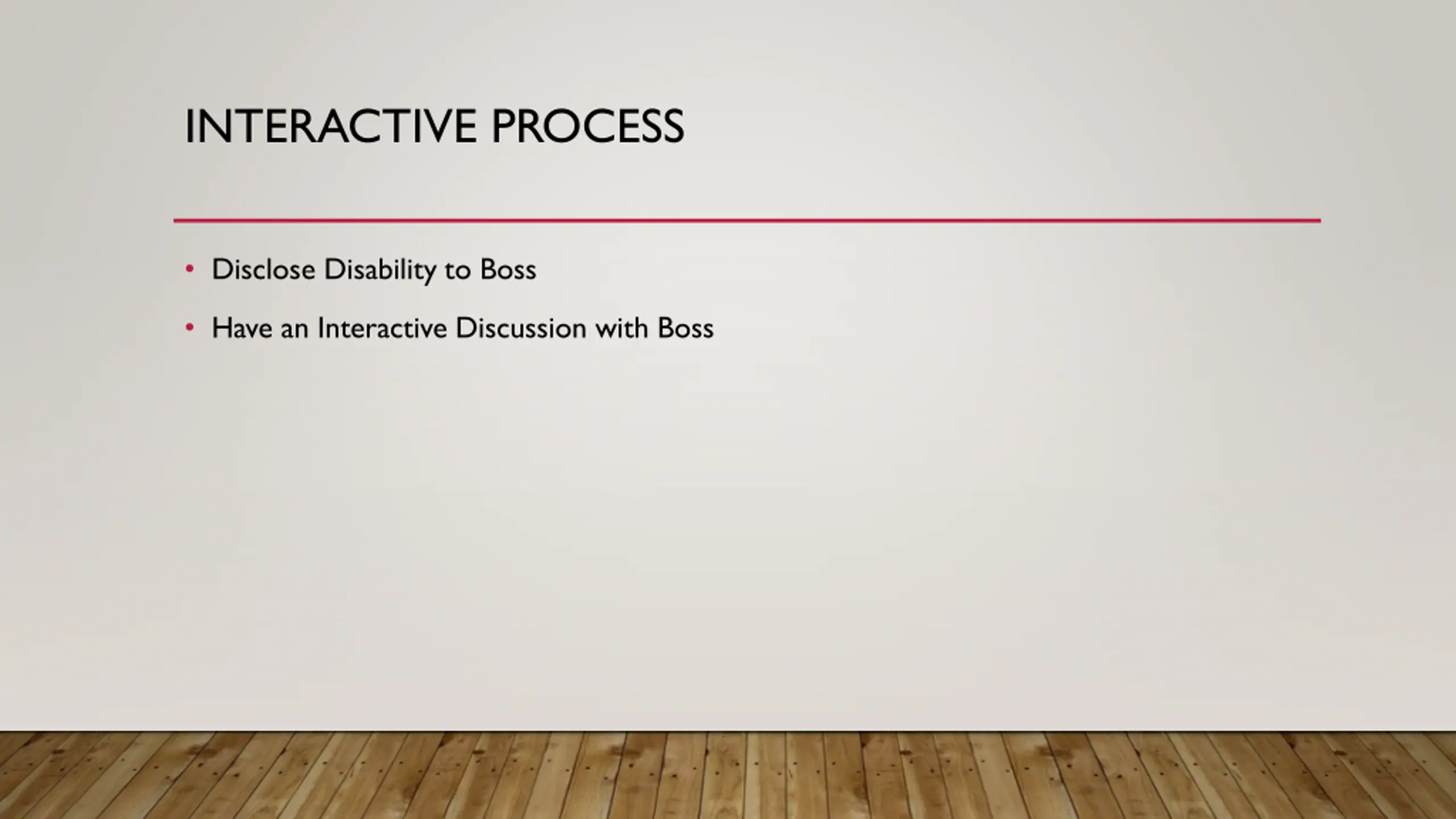 INTERACTIVE PROCESS Disclose Disability to Boss Have an Interactive Discussion with Boss