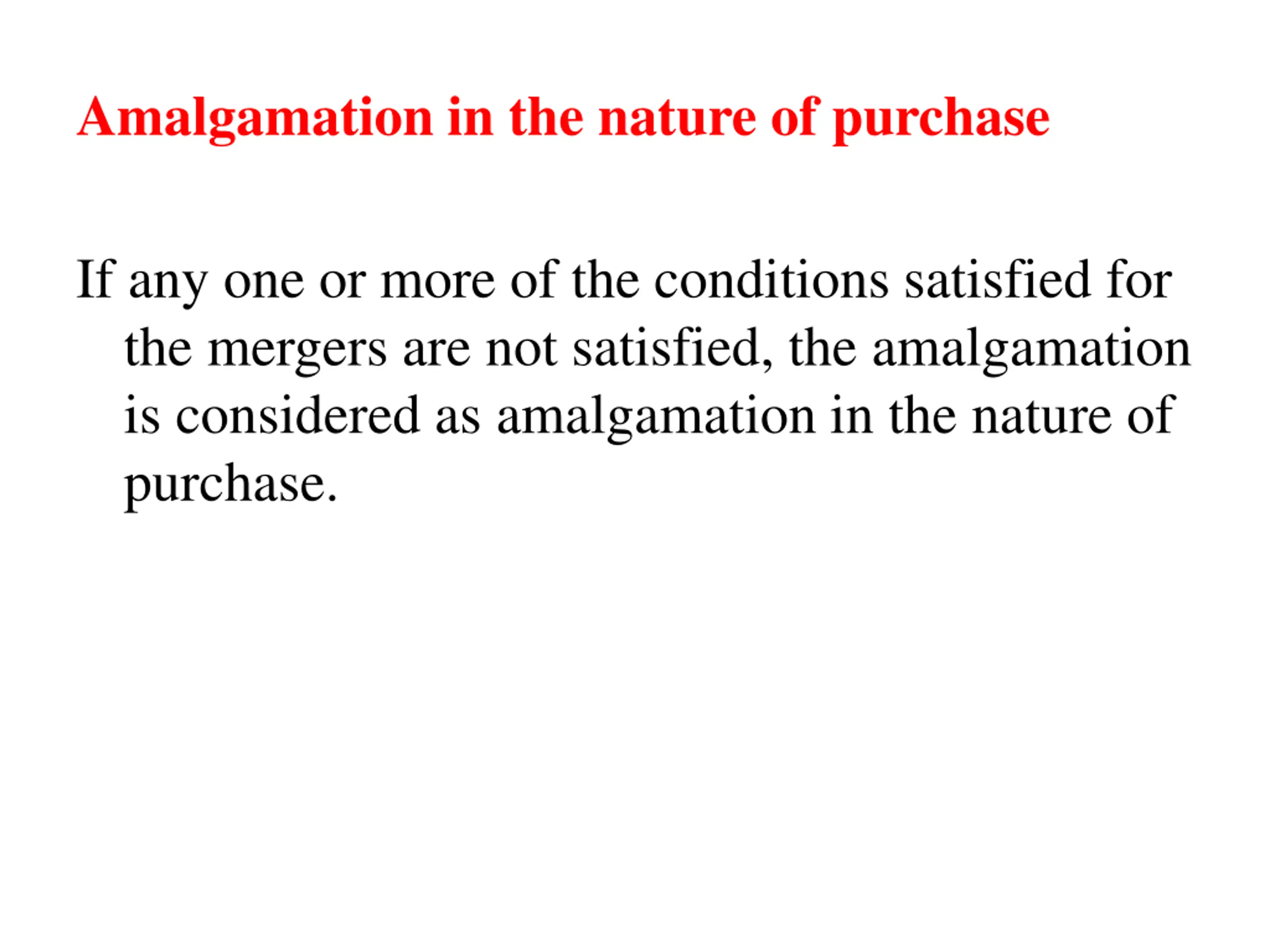 Amalgamation in the nature of purchase If any one or more of the conditions satisfied for the mergers are not satisfied, the amalgamation is considered as amalgamation in the nature of purchase.