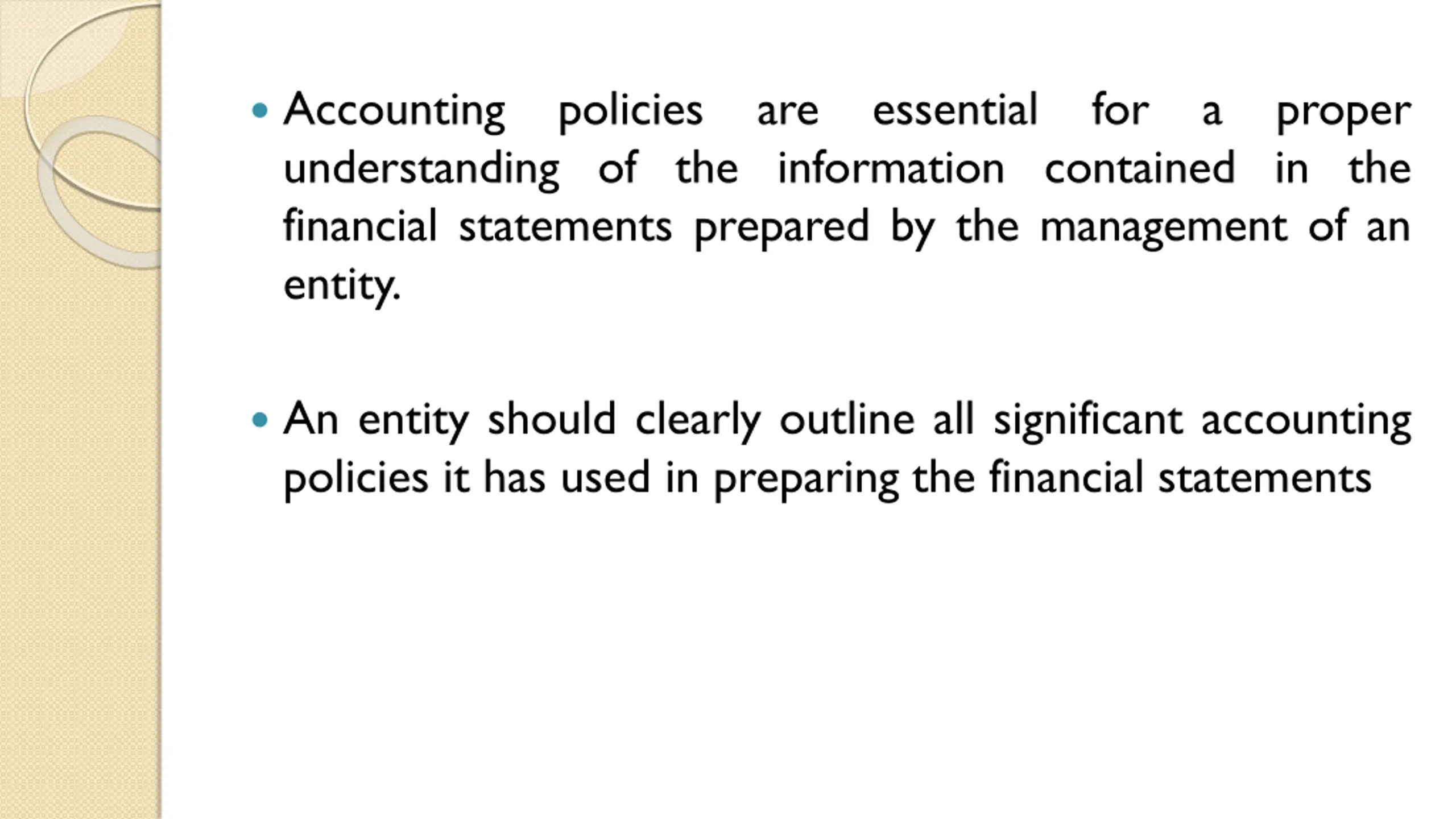 Accounting policies are essential for a proper understanding of the information contained in the financial statements prepared by the management of an entity. An entity should clearly outline all significant accounting policies it has used in preparing the financial statements