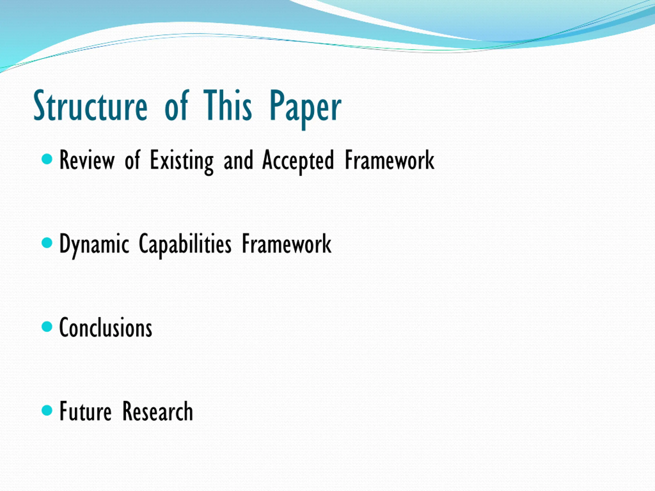 Structure of This Paper Review of Existing and Accepted Framework Dynamic Capabilities Framework Conclusions Future Research