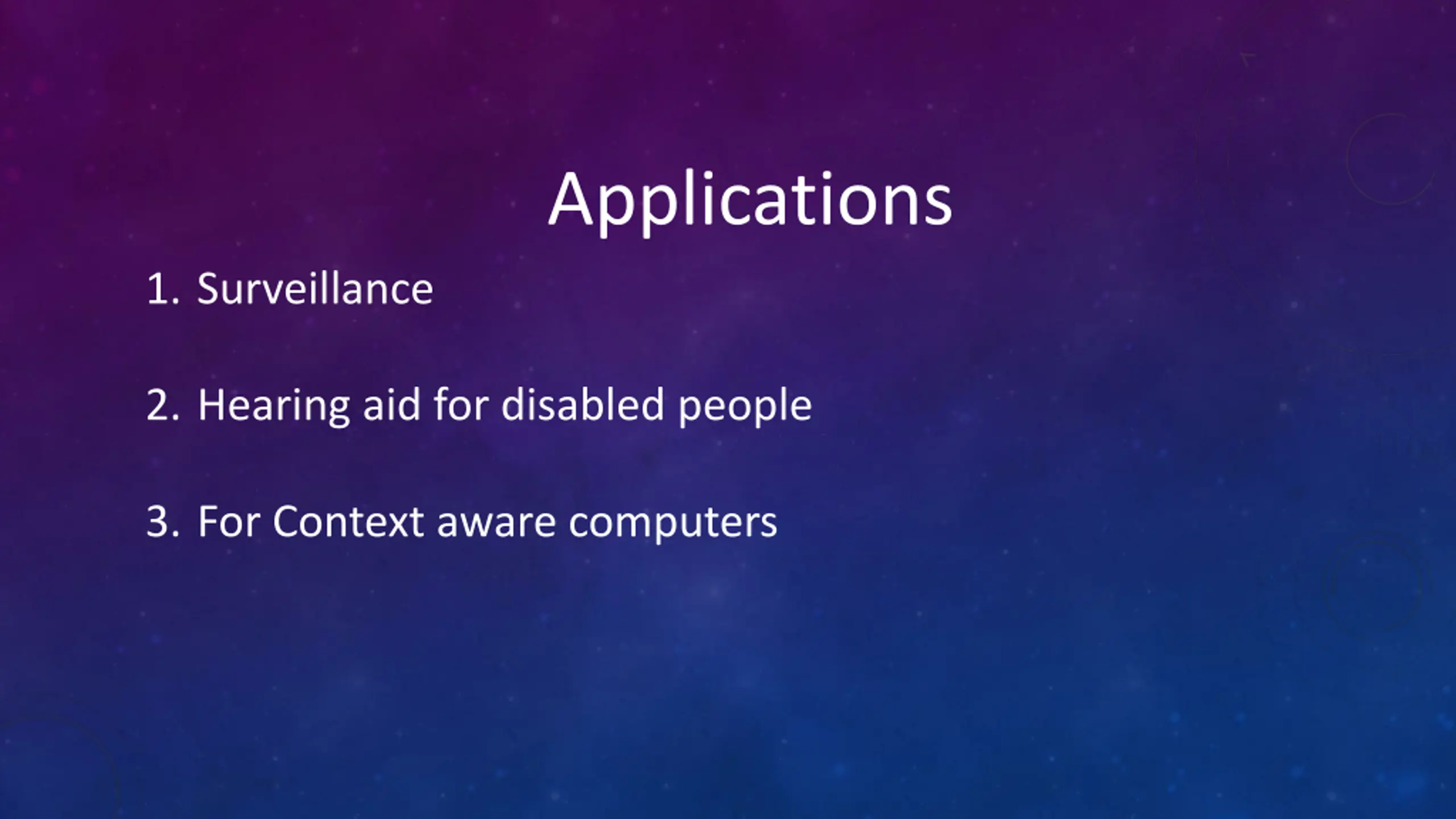 Applications 1. Surveillance 2. Hearing aid for disabled people 3. For Context aware computers