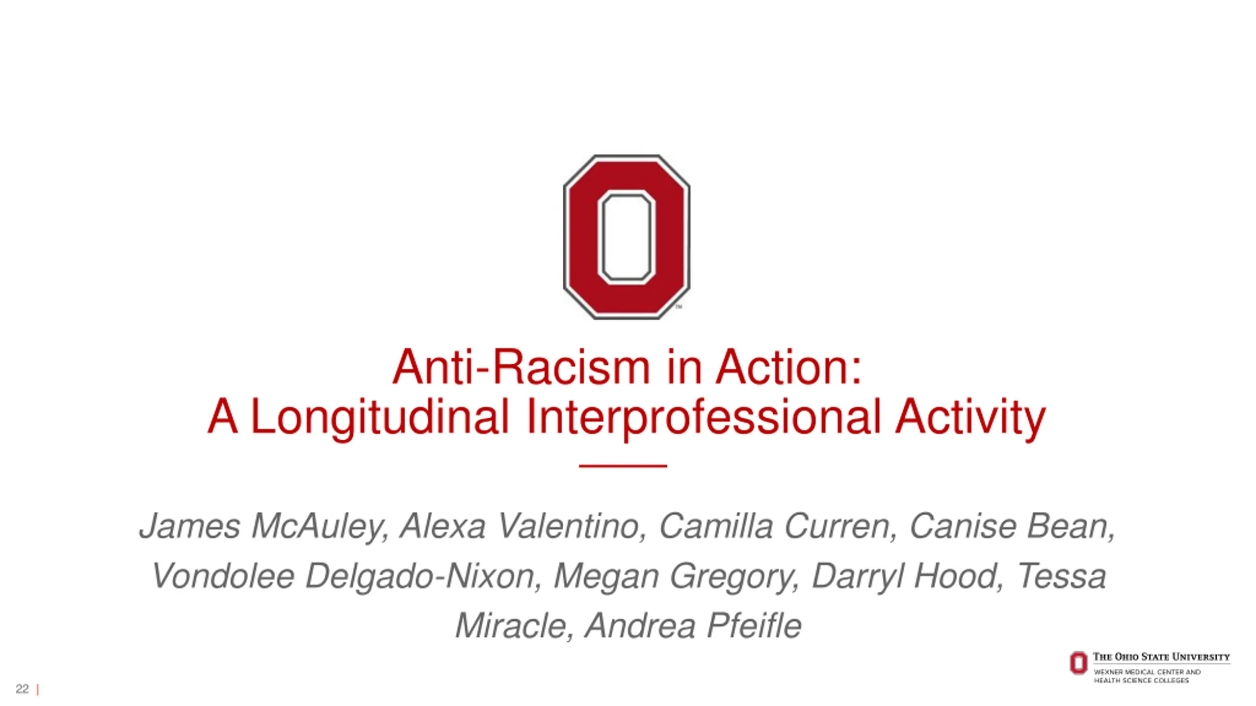 Anti-Racism in Action: A Longitudinal Interprofessional Activity James McAuley, Alexa Valentino, Camilla Curren, Canise Bean, Vondolee Delgado-Nixon, Megan Gregory, Darryl Hood, Tessa Miracle, Andrea Pfeifle 22 |