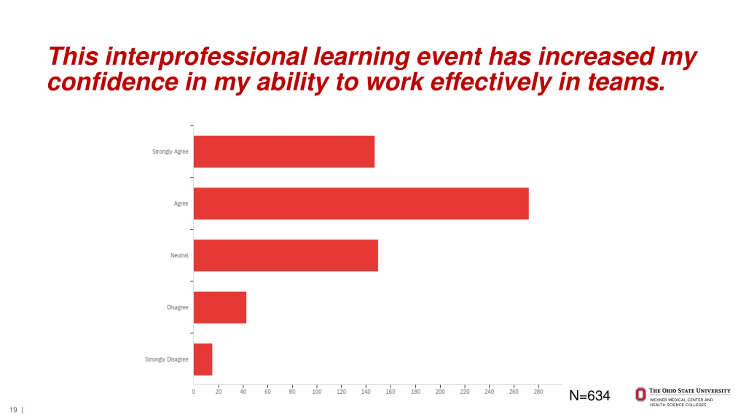 This interprofessional learning event has increased my confidence in my ability to work effectively in teams. N=634 19 |
