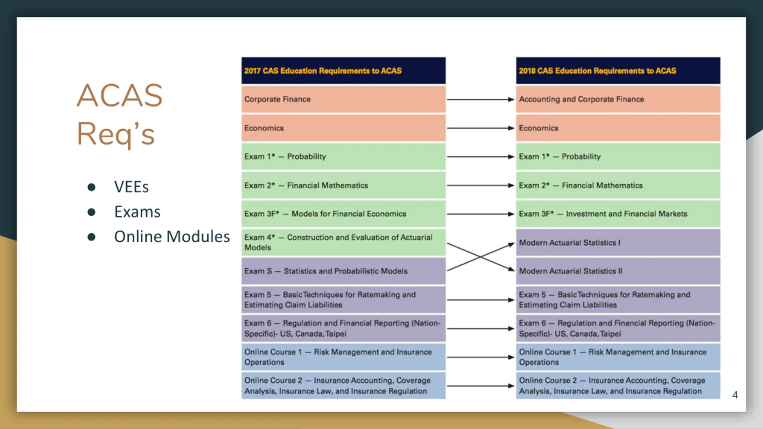 ASA Requirements Validation of Education Experience (VEE) Completed while in school Need 2 exams before credit Exams Modules Completed while working 3