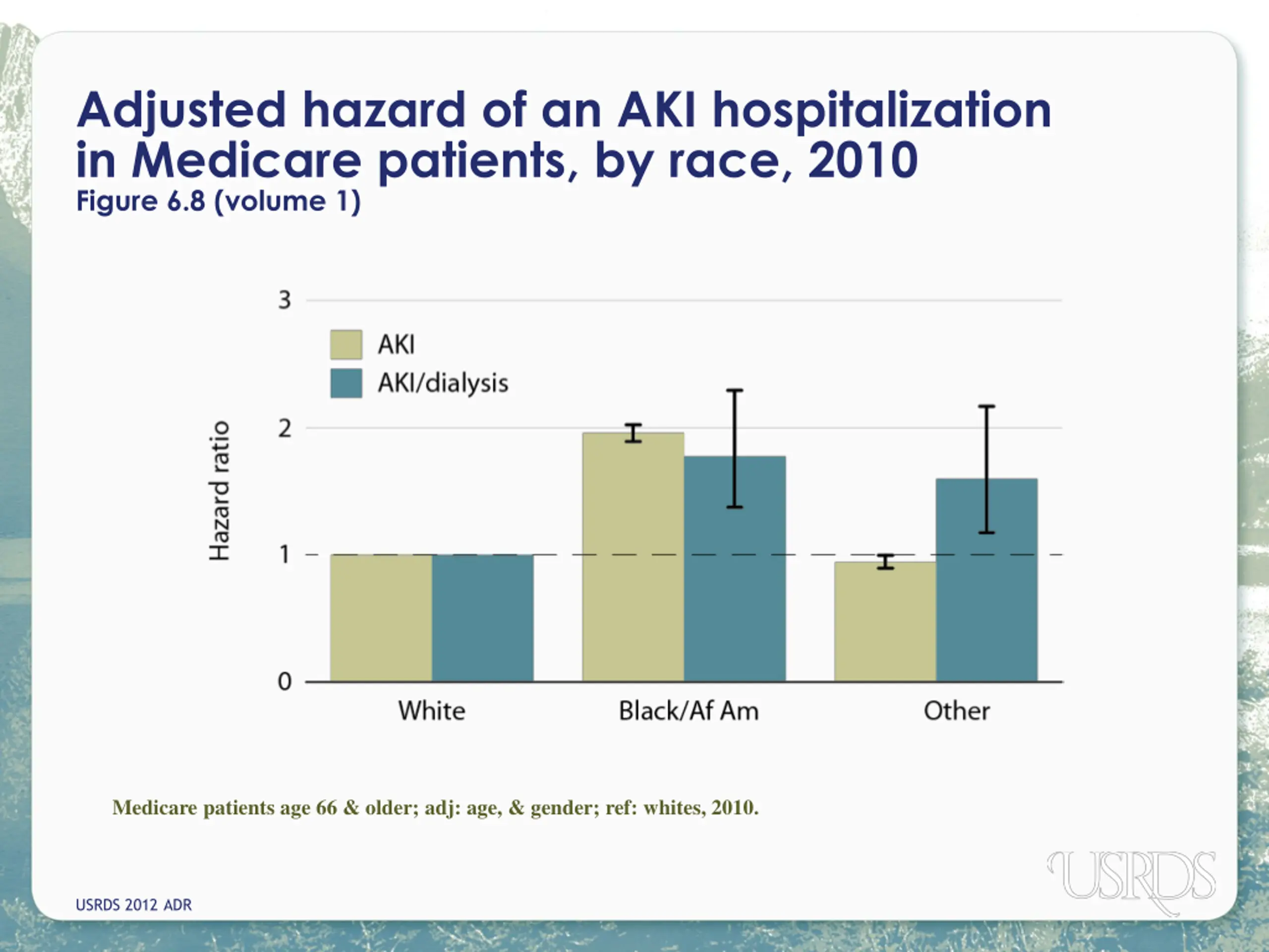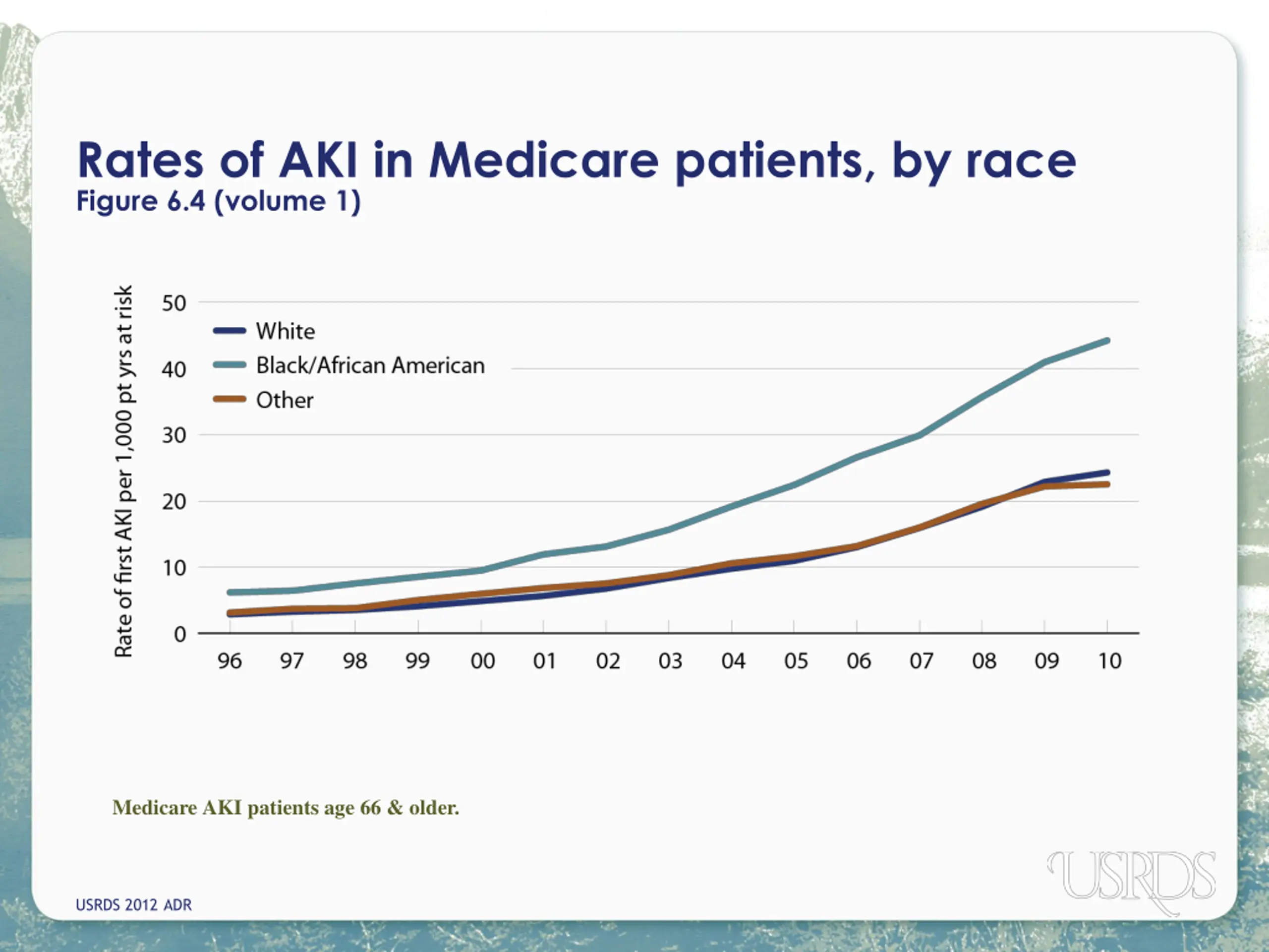 Rates of AKI in Medicare patients, by race Figure 6.4 (volume 1) Medicare AKI patients age 66 & older. USRDS 2012 ADR
