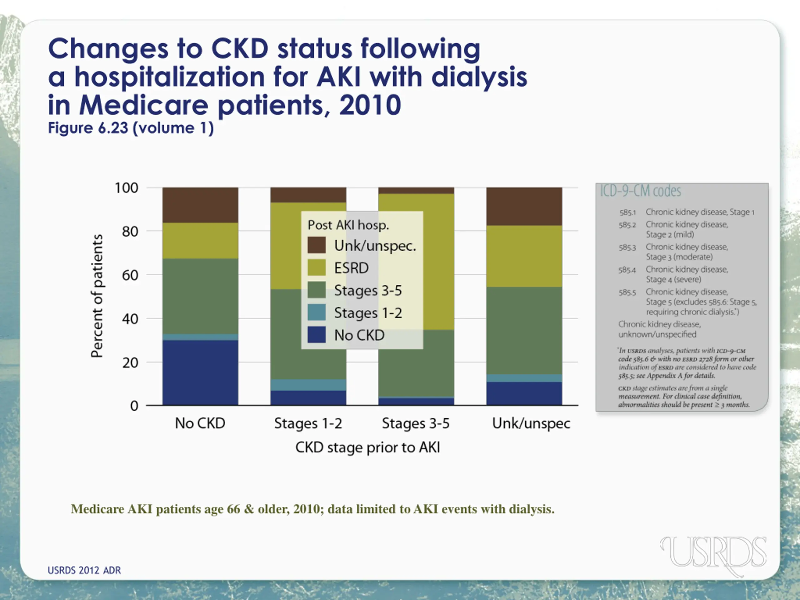 Changes to CKD status following hospitalization for AKI in Medicare patients, 2010 Figure 6.21 (volume 1) Medicare AKI patients age 66 & older, 2010 USRDS 2012 ADR