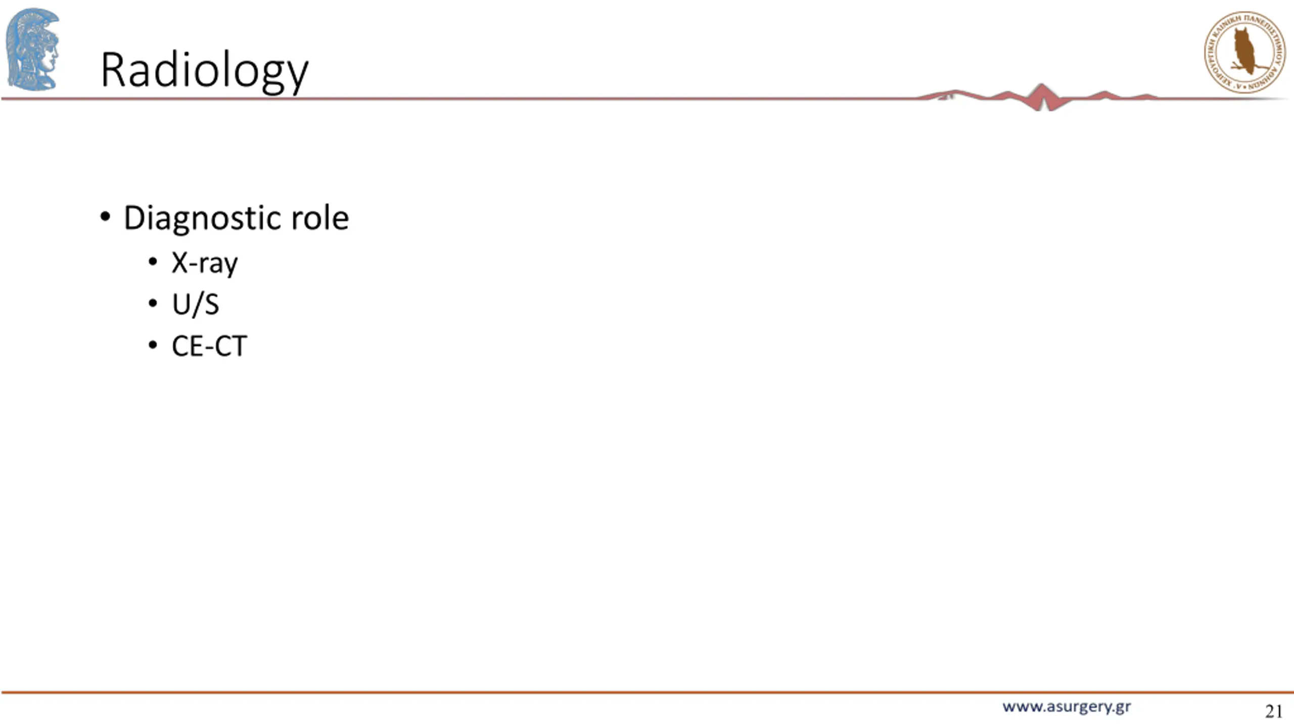 Radiology Diagnostic role X-ray U/S CE-CT 21