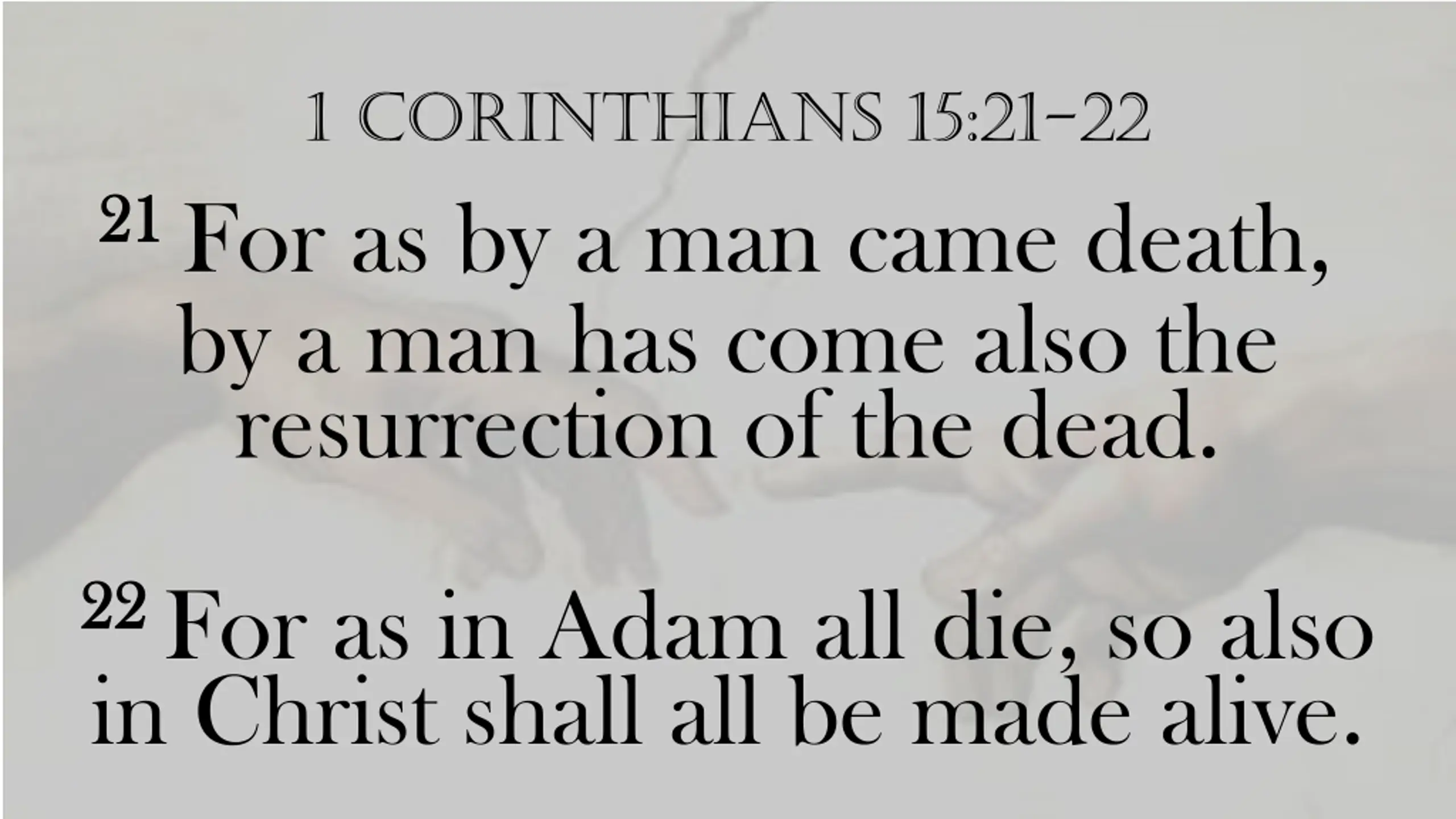 1 Corinthians 15:21-22 21For as by a man came death, by a man has come also the resurrection of the dead. 21 22 22For as in Adam all die, so also in Christ shall all be made alive.