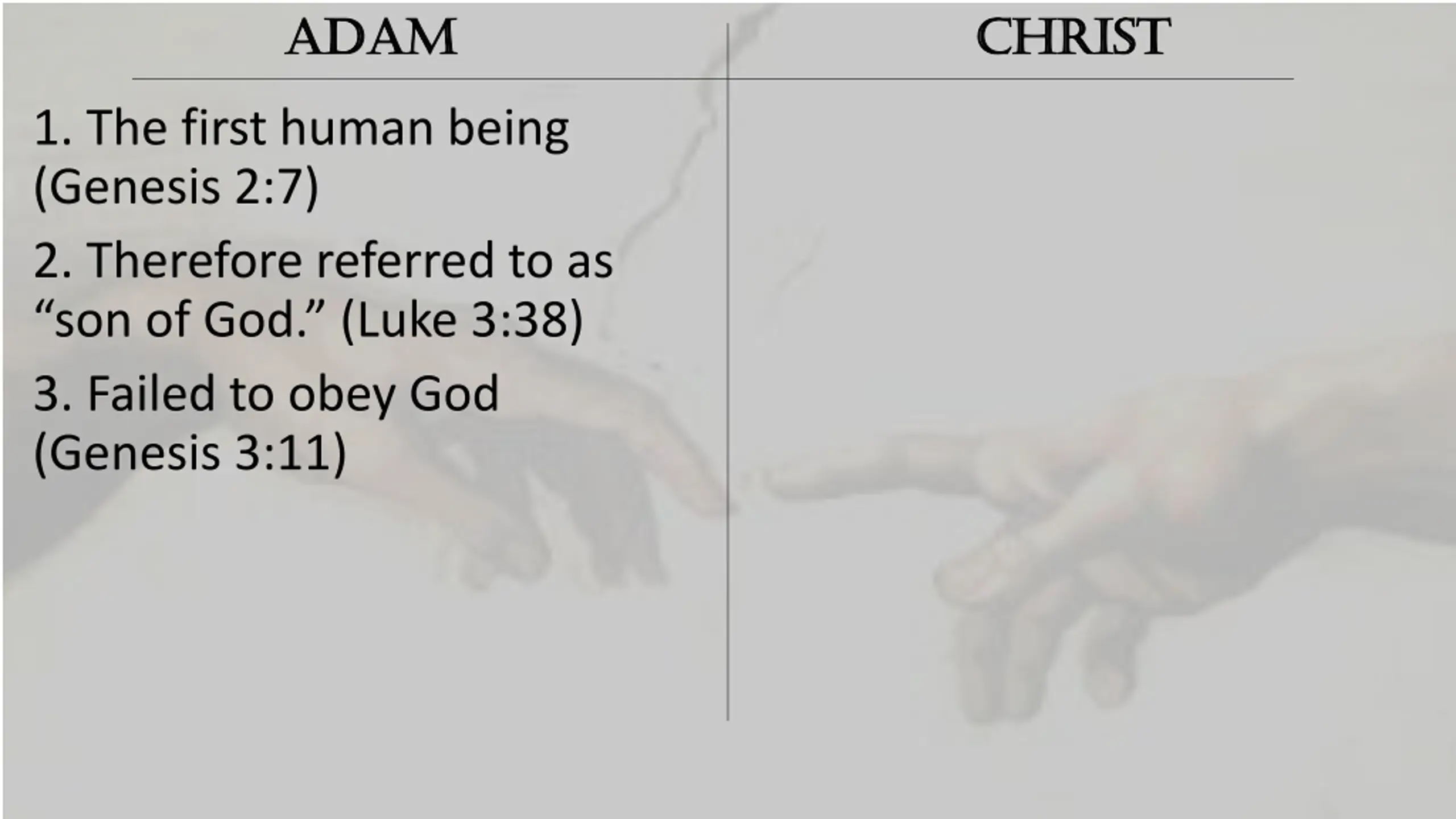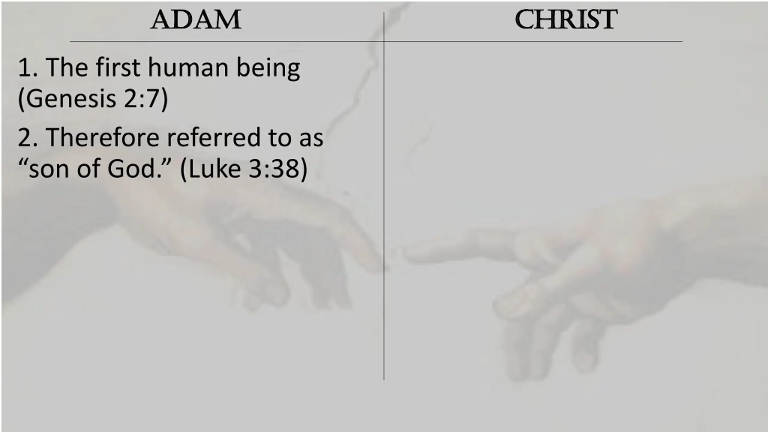 Adam Adam Christ Christ 1. The first human being (Genesis 2:7) 2. Therefore referred to as son of God. (Luke 3:38)