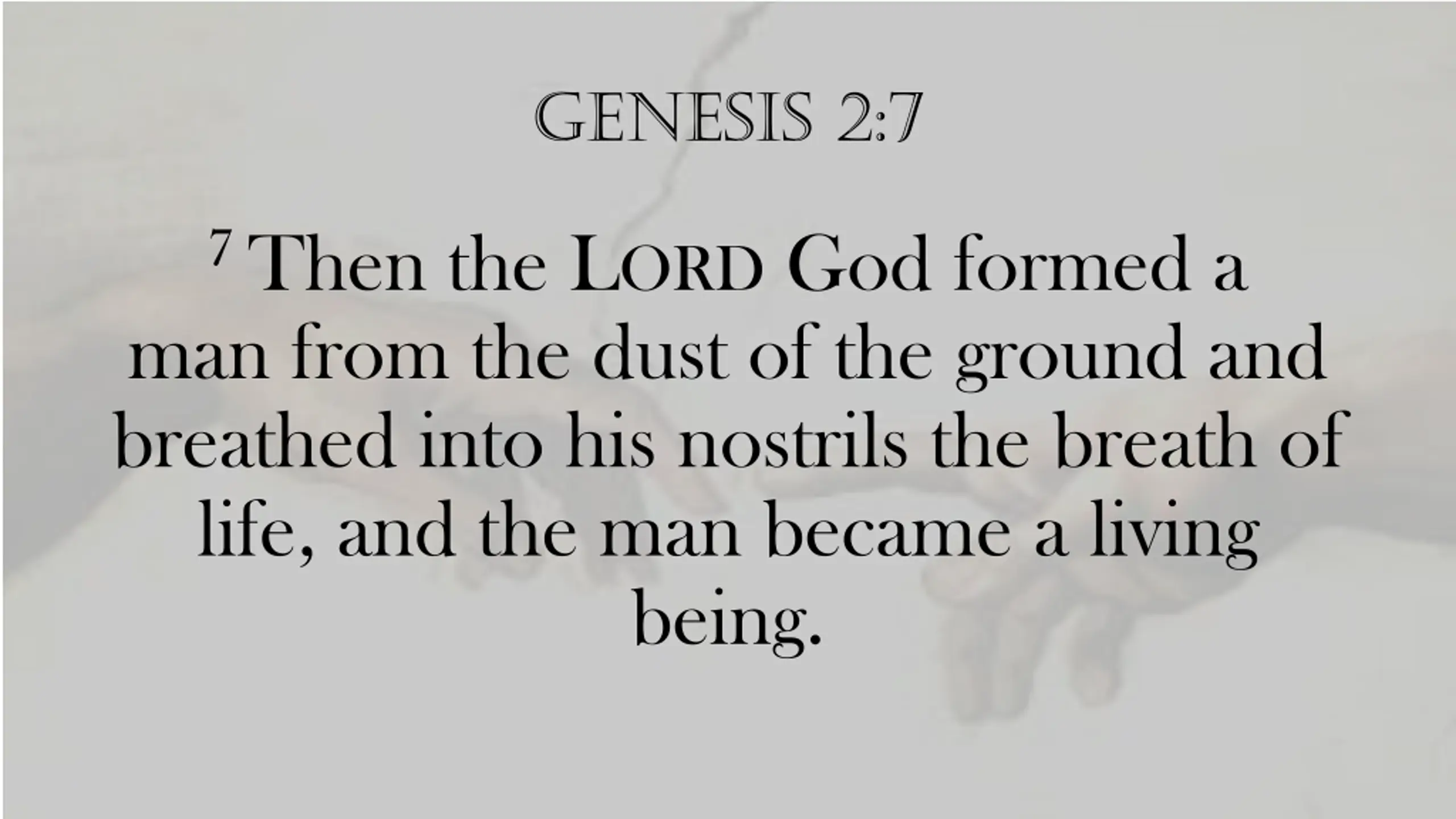 Genesis 2:7 7Then the LORD God formed a man from the dust of the ground and breathed into his nostrils the breath of life, and the man became a living being.