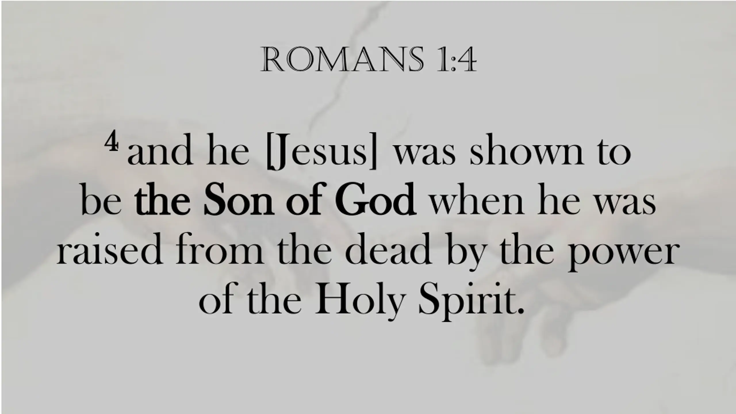 Romans 1:4 4 4and he [Jesus] was shown to be the Son of God the Son of God when he was raised from the dead by the power of the Holy Spirit.